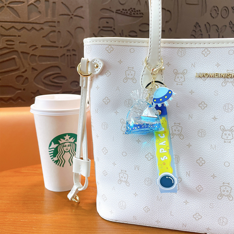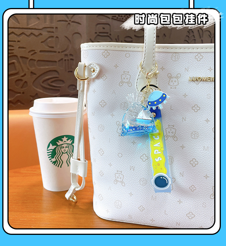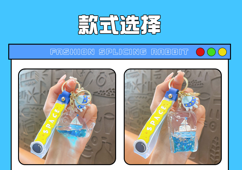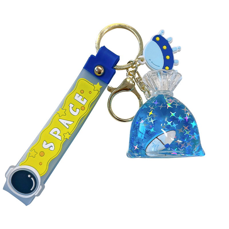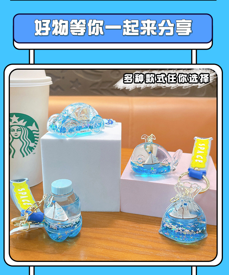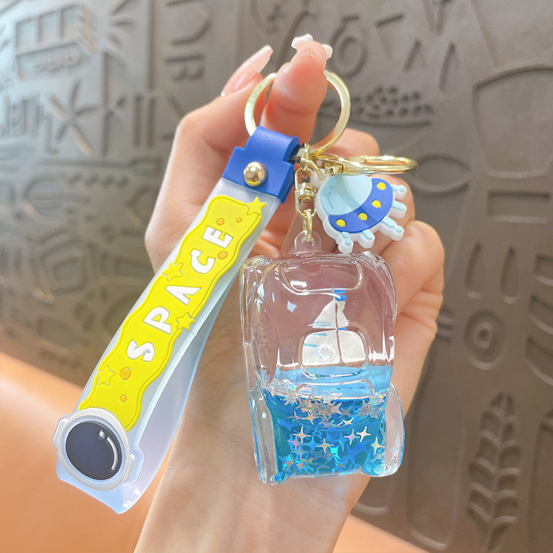 入油蓝色帆船漂浮瓶钥匙扣链可爱液体流沙汽车挂件包包小礼品批发