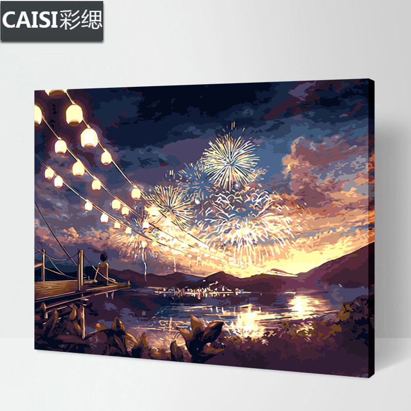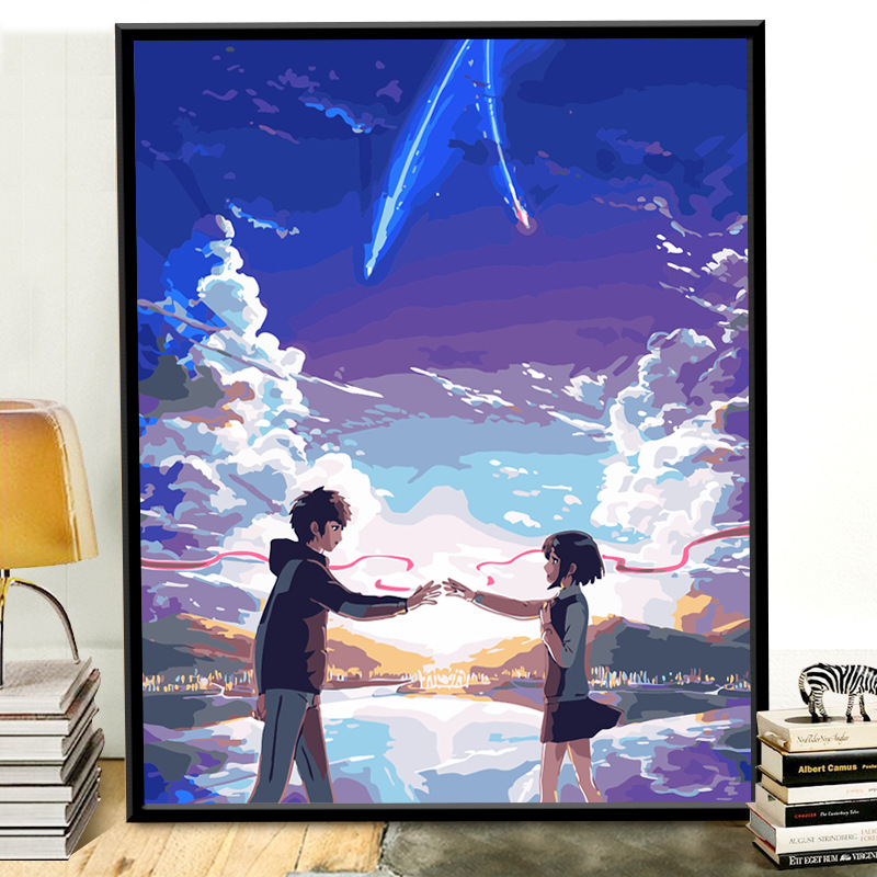 厂家批发DIY数字油画40*50CM无框客厅风景卡通动漫装饰画你的名字