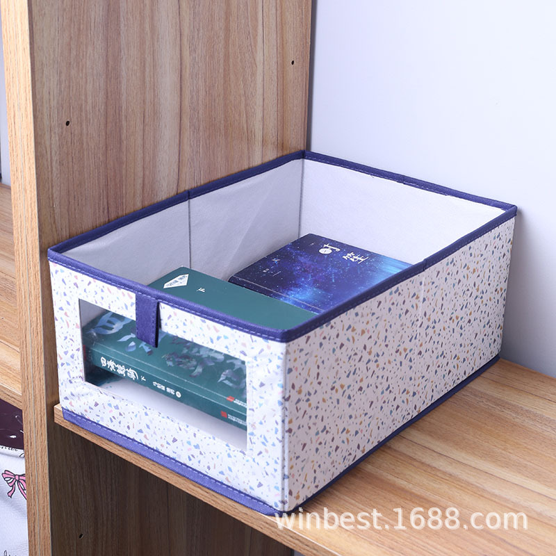 水磨石无盖开窗收纳盒抽屉杂物收纳框透明视窗长方