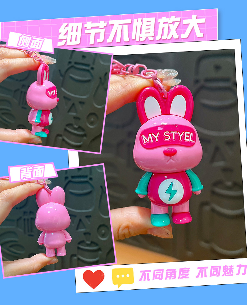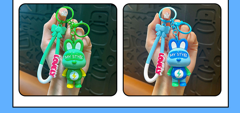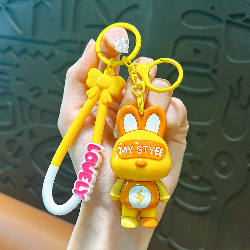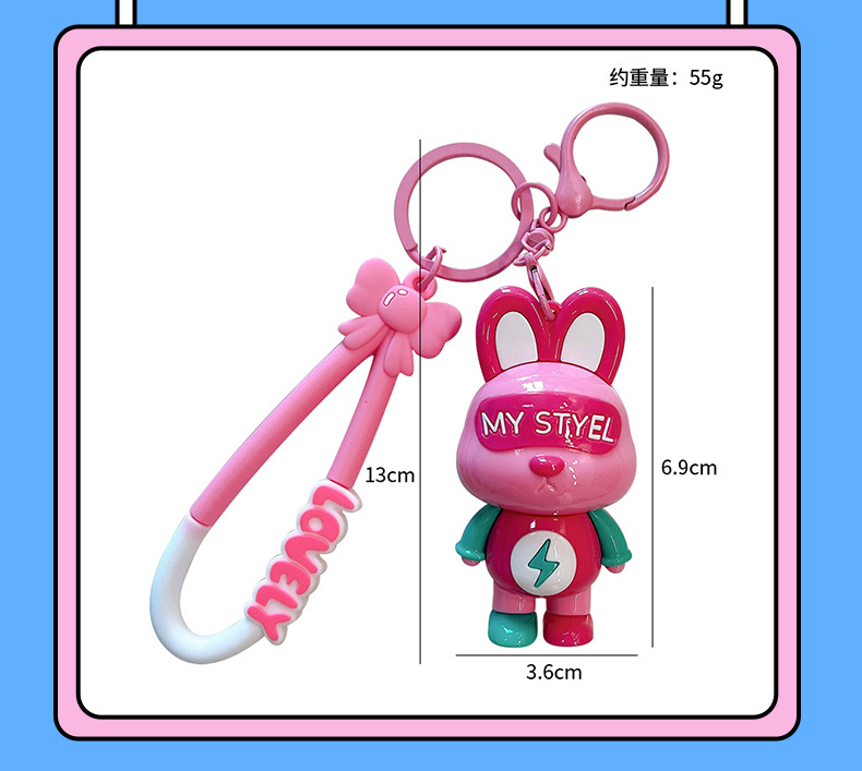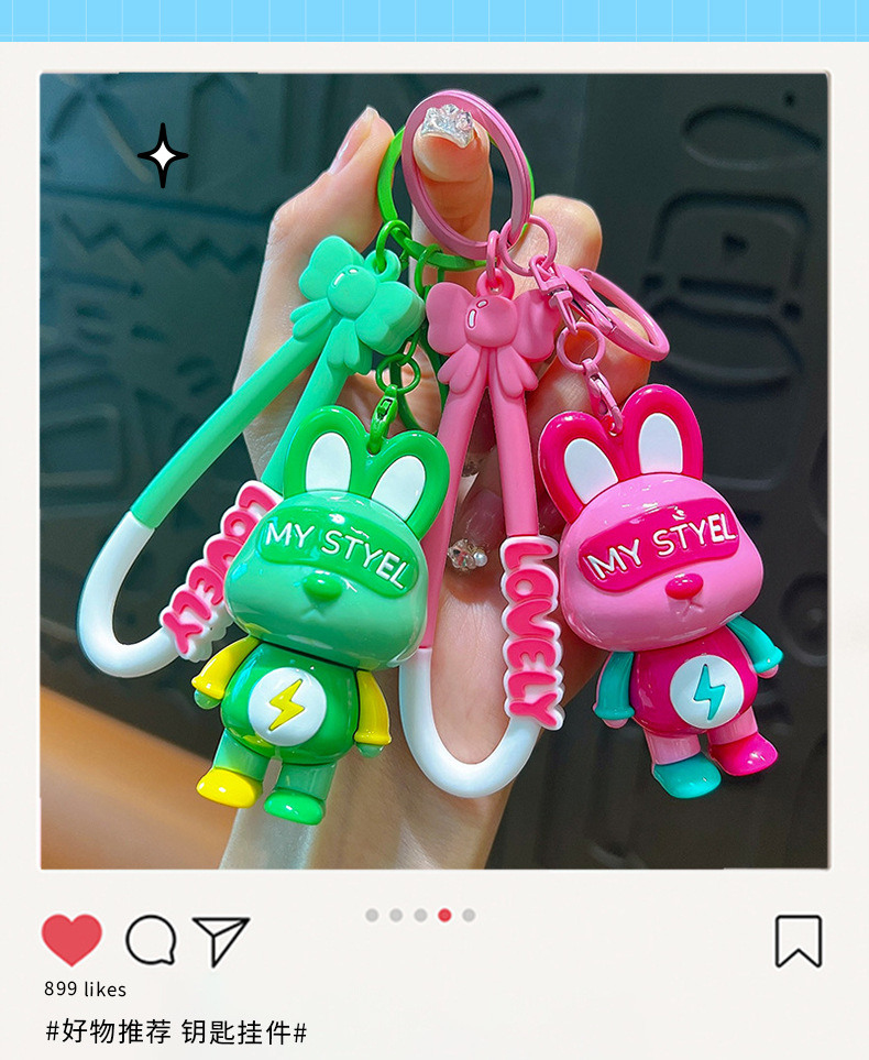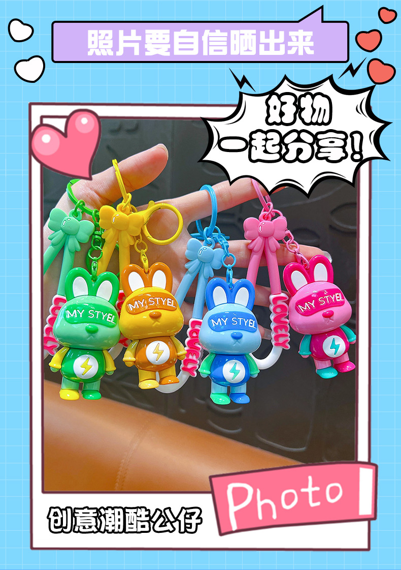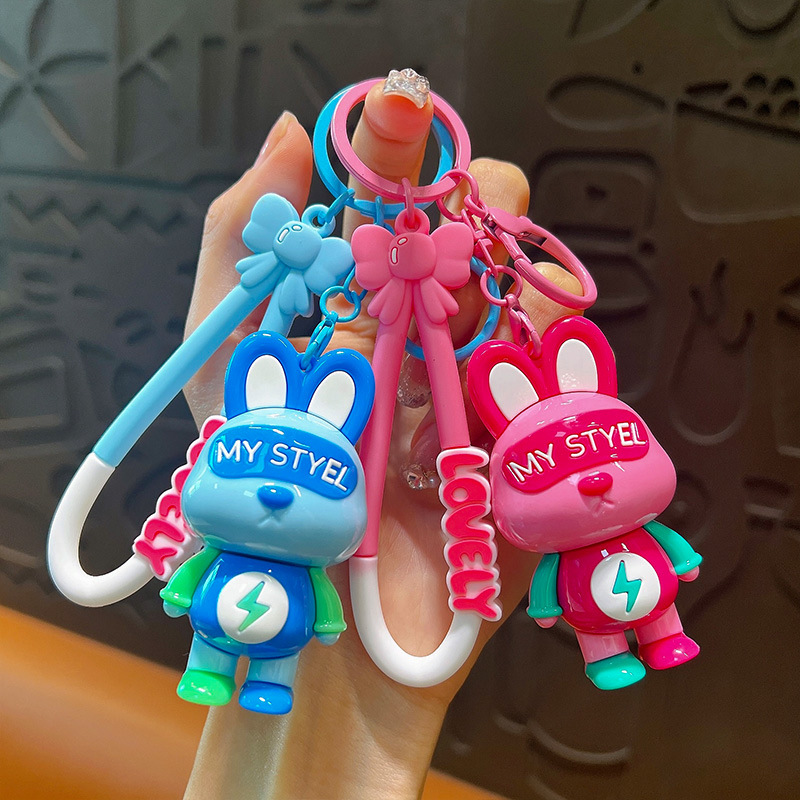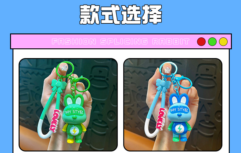 创意新款拼色闪电兔子钥匙扣可爱书包挂件汽车钥匙链学生礼品批发