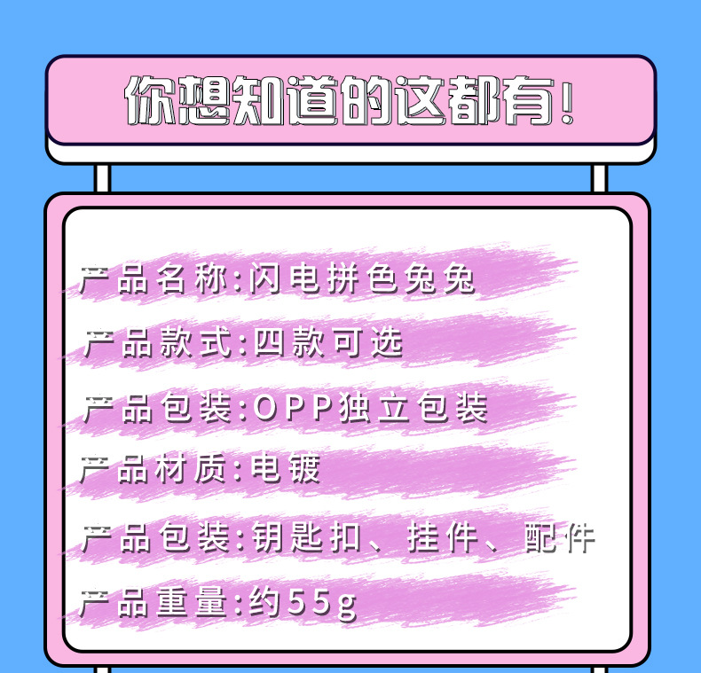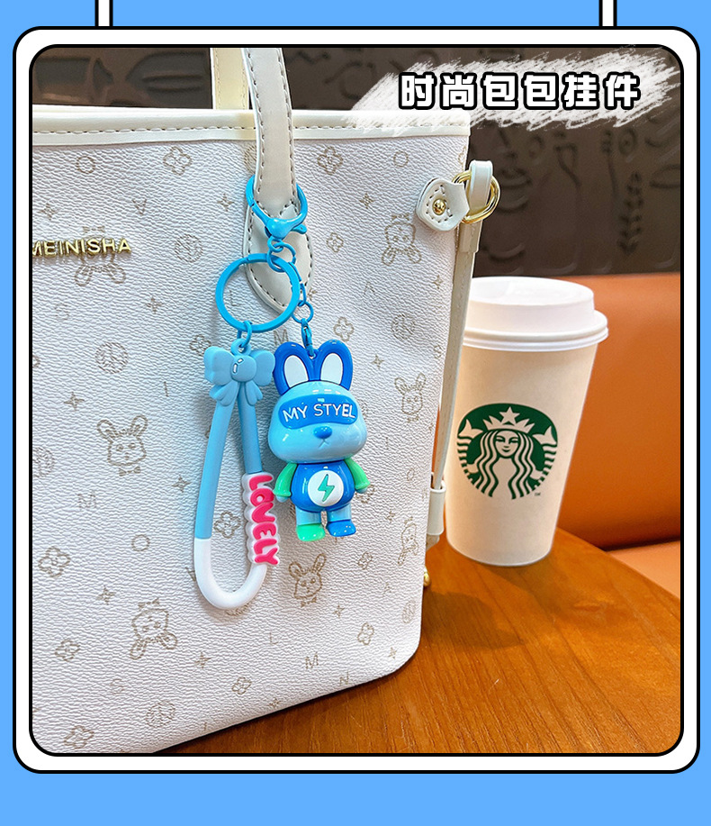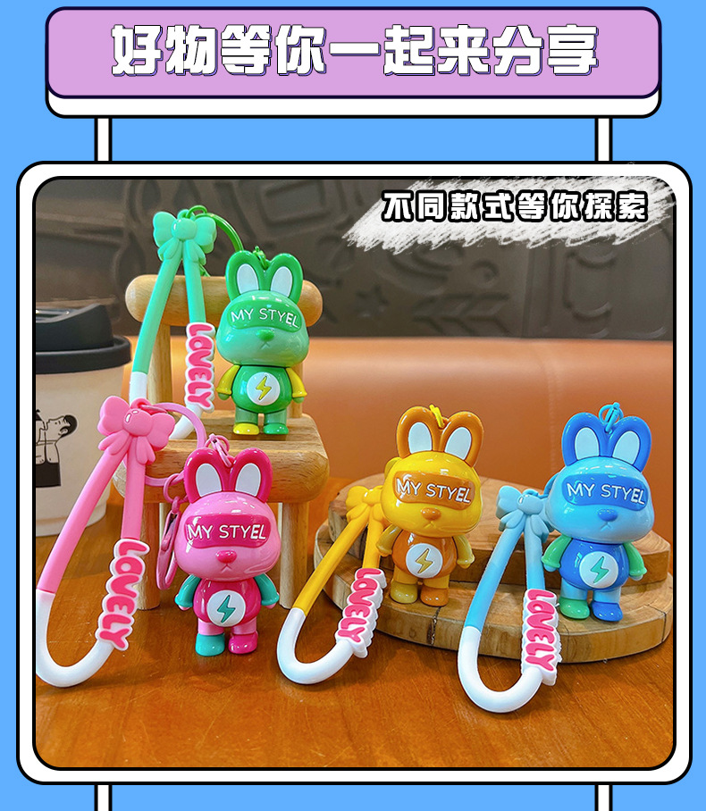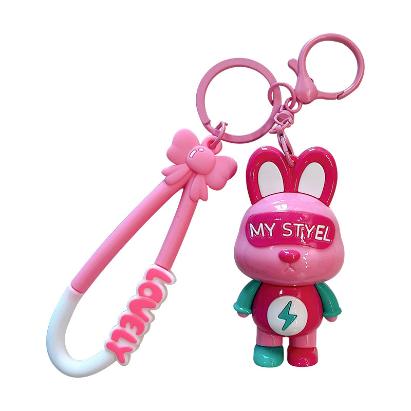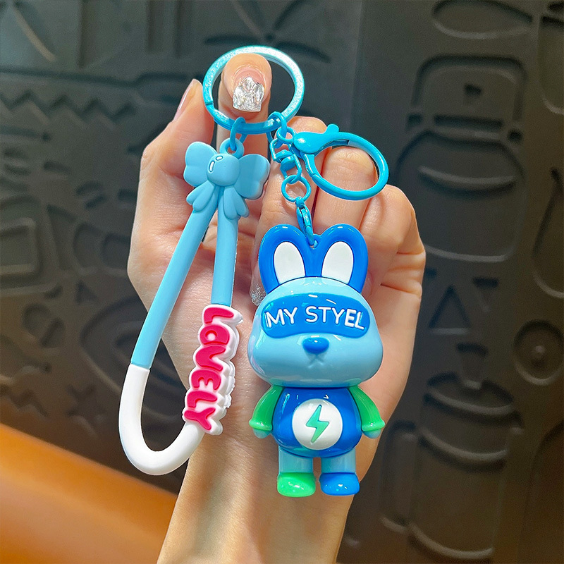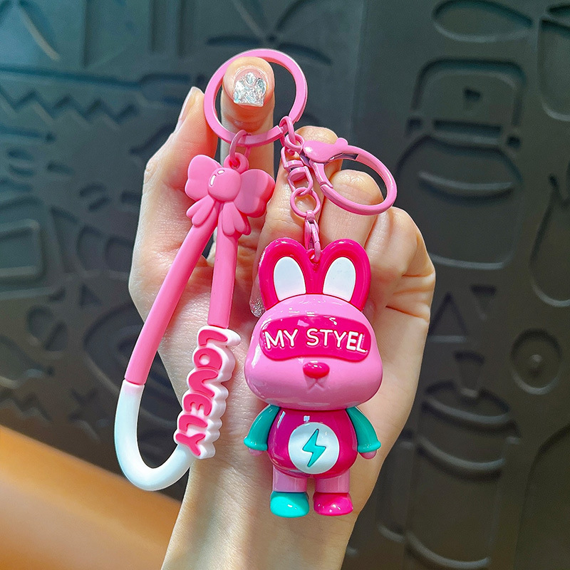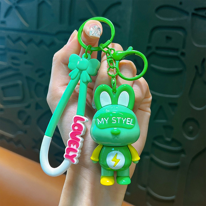 创意新款拼色闪电兔子钥匙扣可爱书包挂件汽车钥匙链学生礼品批发