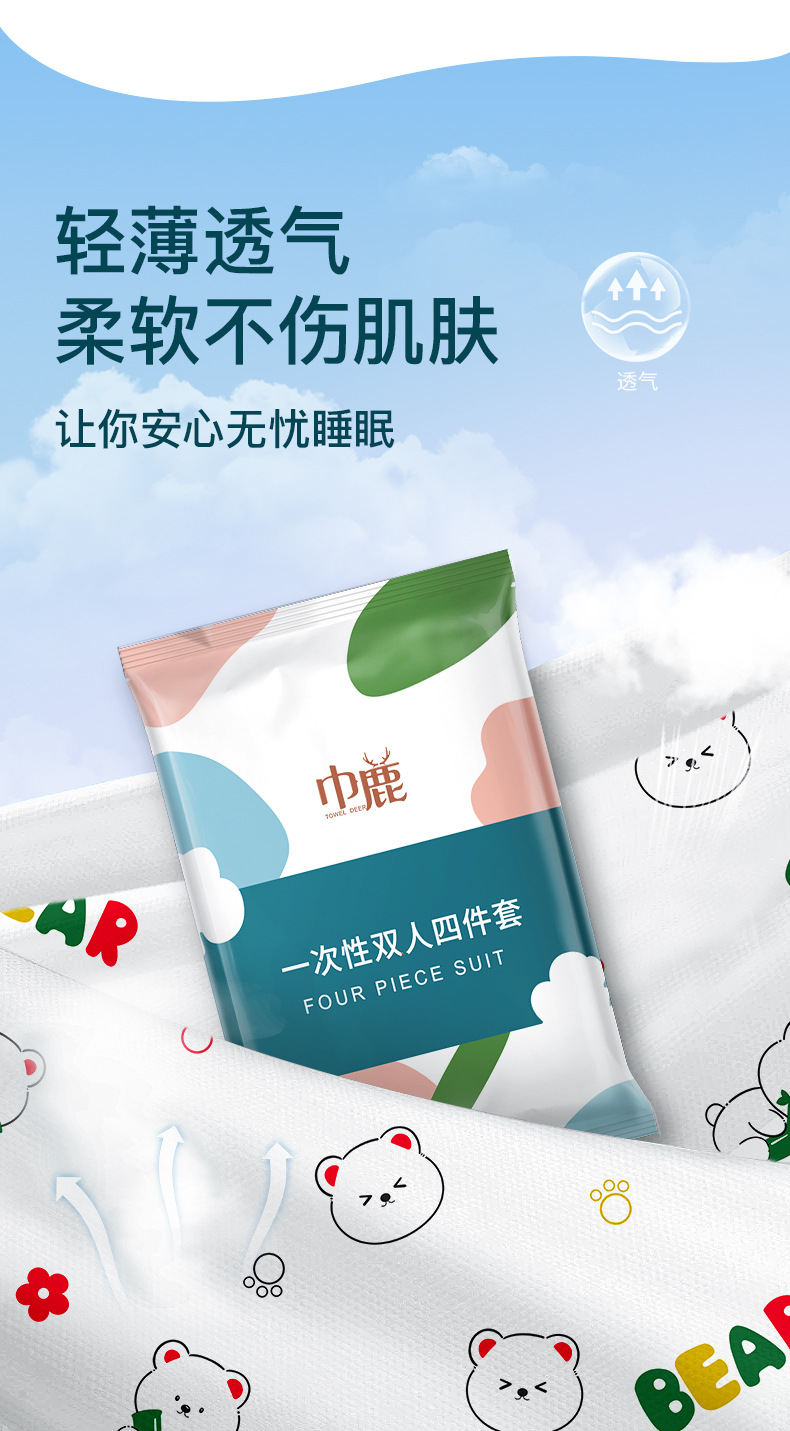 印花双人四件套一次性床单旅行民宿便携旅游酒店隔脏被罩枕套被套