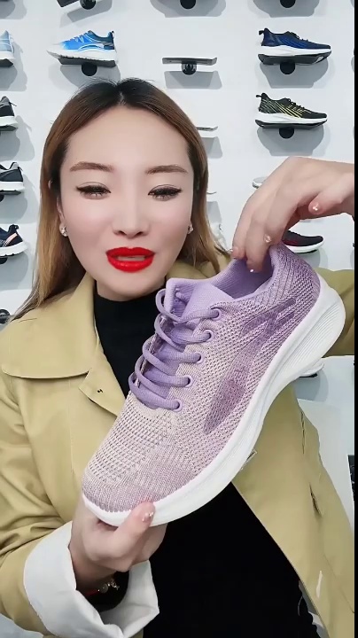 亚马逊wish跨境批发休闲软底运动鞋透气单鞋飞织网面鞋跑步鞋女