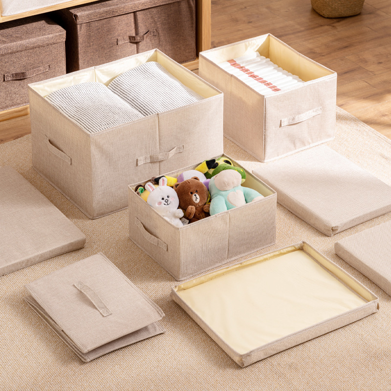 棉麻布艺收纳箱带盖储物整理箱有盖收纳盒折叠收纳箱衣柜衣服收纳