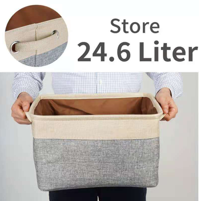 防棉麻无盖收纳篮 手提式大容量布艺收纳箱 玩具可折叠收纳筐