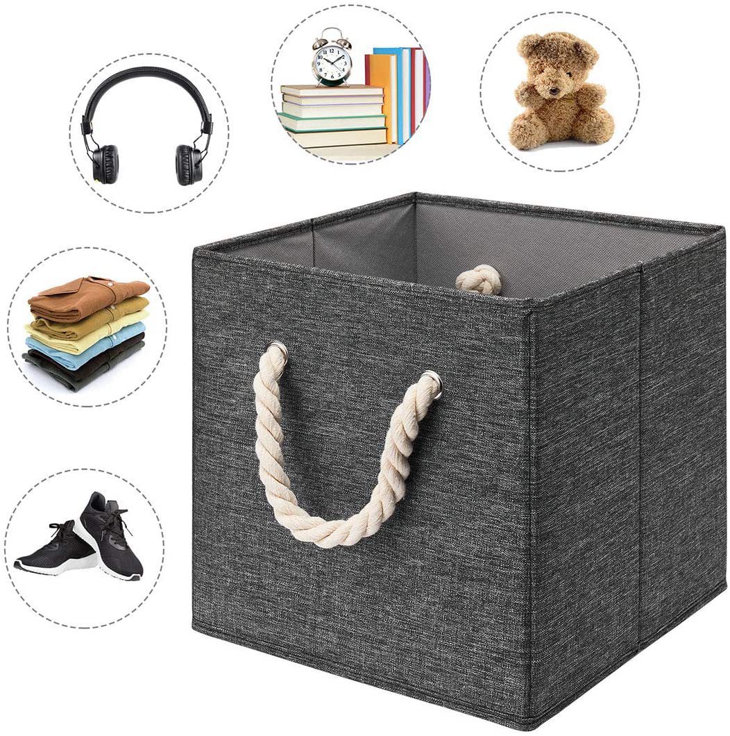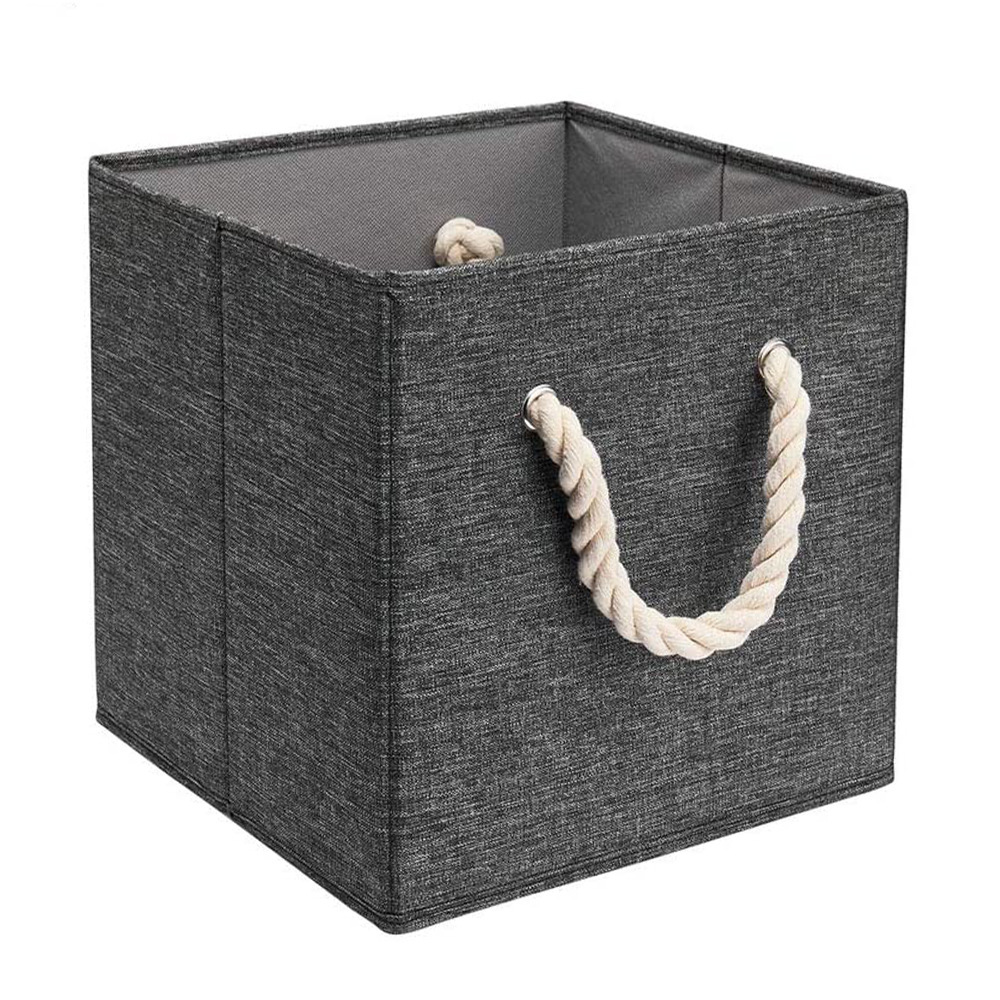 可折叠棉麻布艺衣服收纳盒手提储物盒无盖33cm玩具收纳筐整理箱子