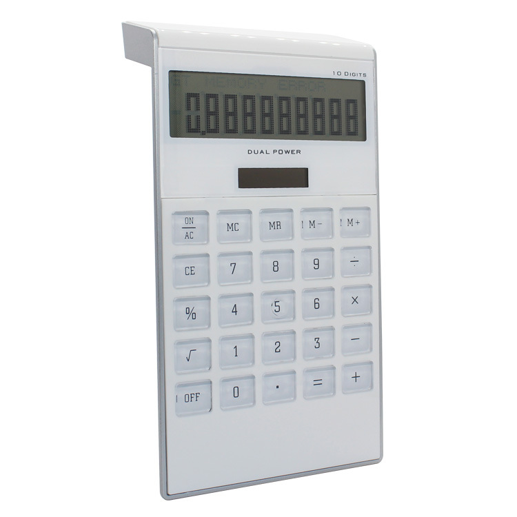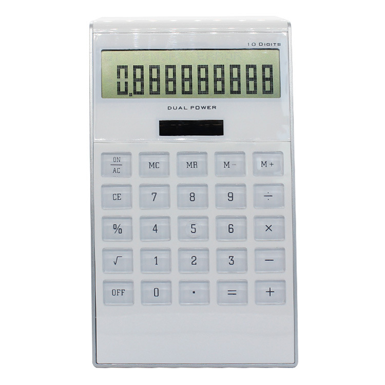 轻奢时尚办公文教双电源太阳能10位数台式计算器 透明按键计算器