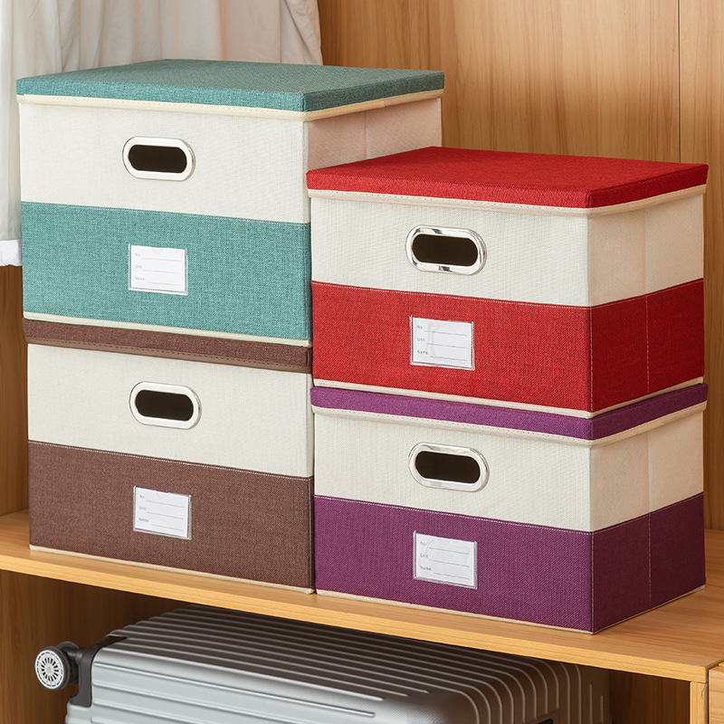 2022新款收纳箱 棉麻天地盖收纳箱 大号衣物收纳箱 大中小三件套