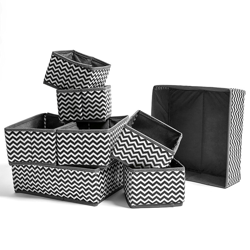 可折叠抽屉袜子整理盒衣物收纳箱波浪纹无纺布内衣收纳盒六件套