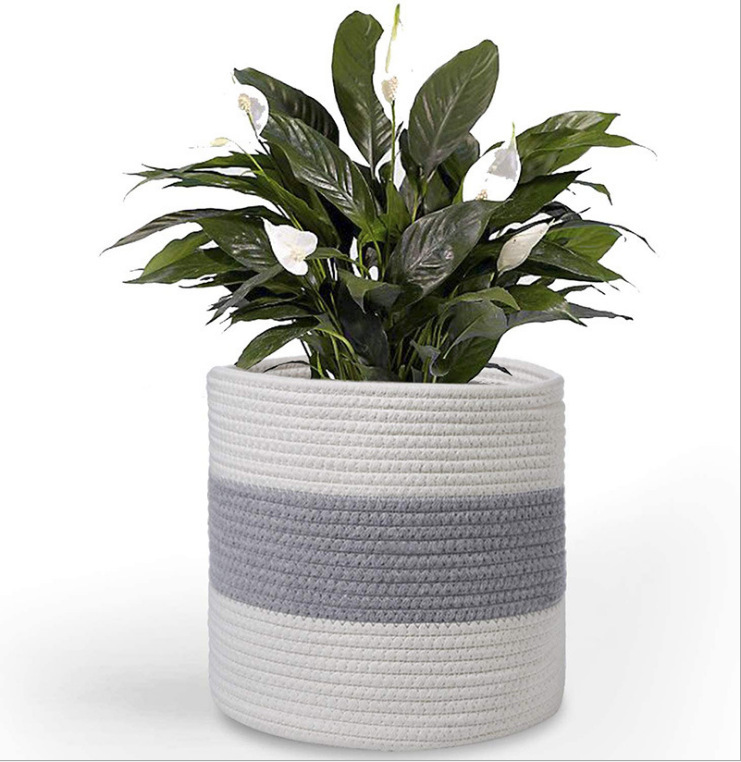 家居装饰脏衣篮脏衣篓收纳篮棉绳编织篮花盆篮子草编圆形储物篮