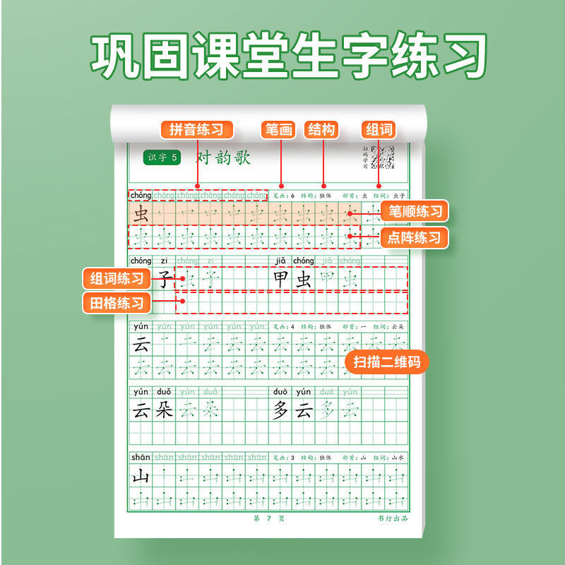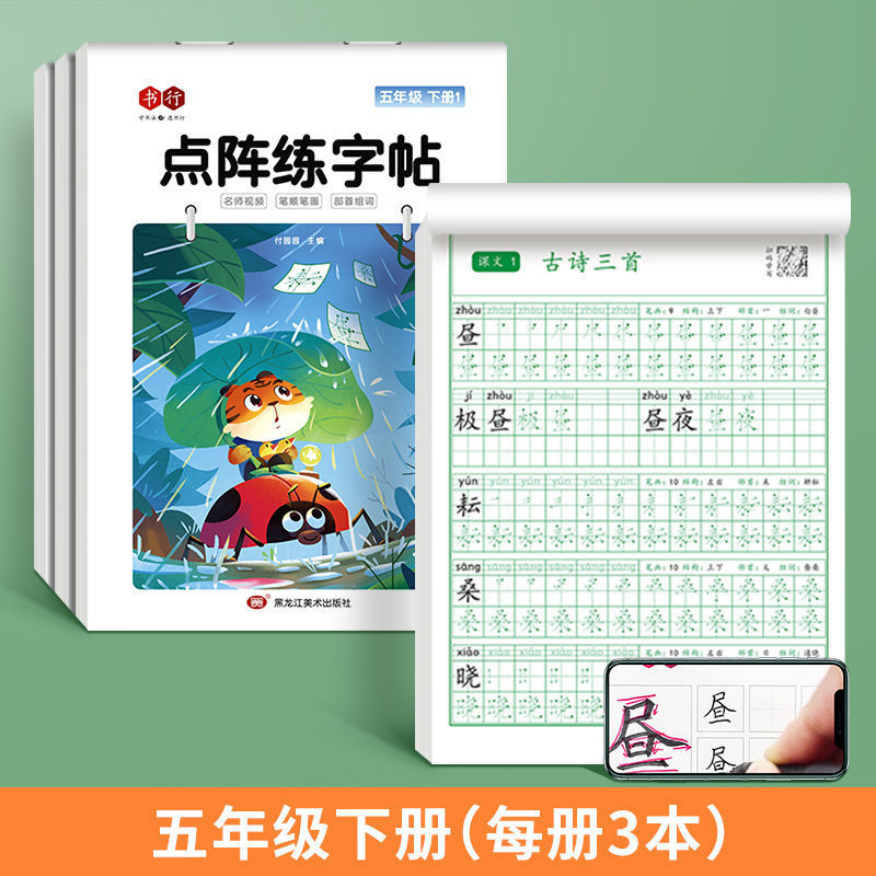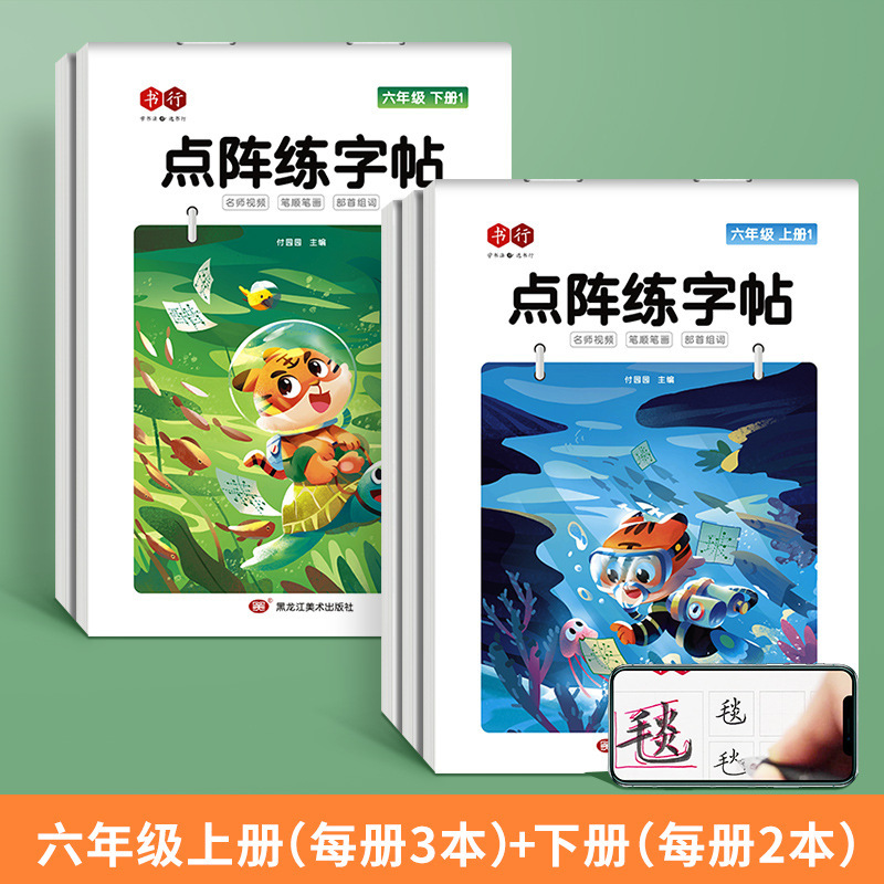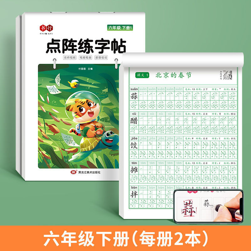 小学生点阵练字帖1--6年级人教版同步语文课本生字描红本