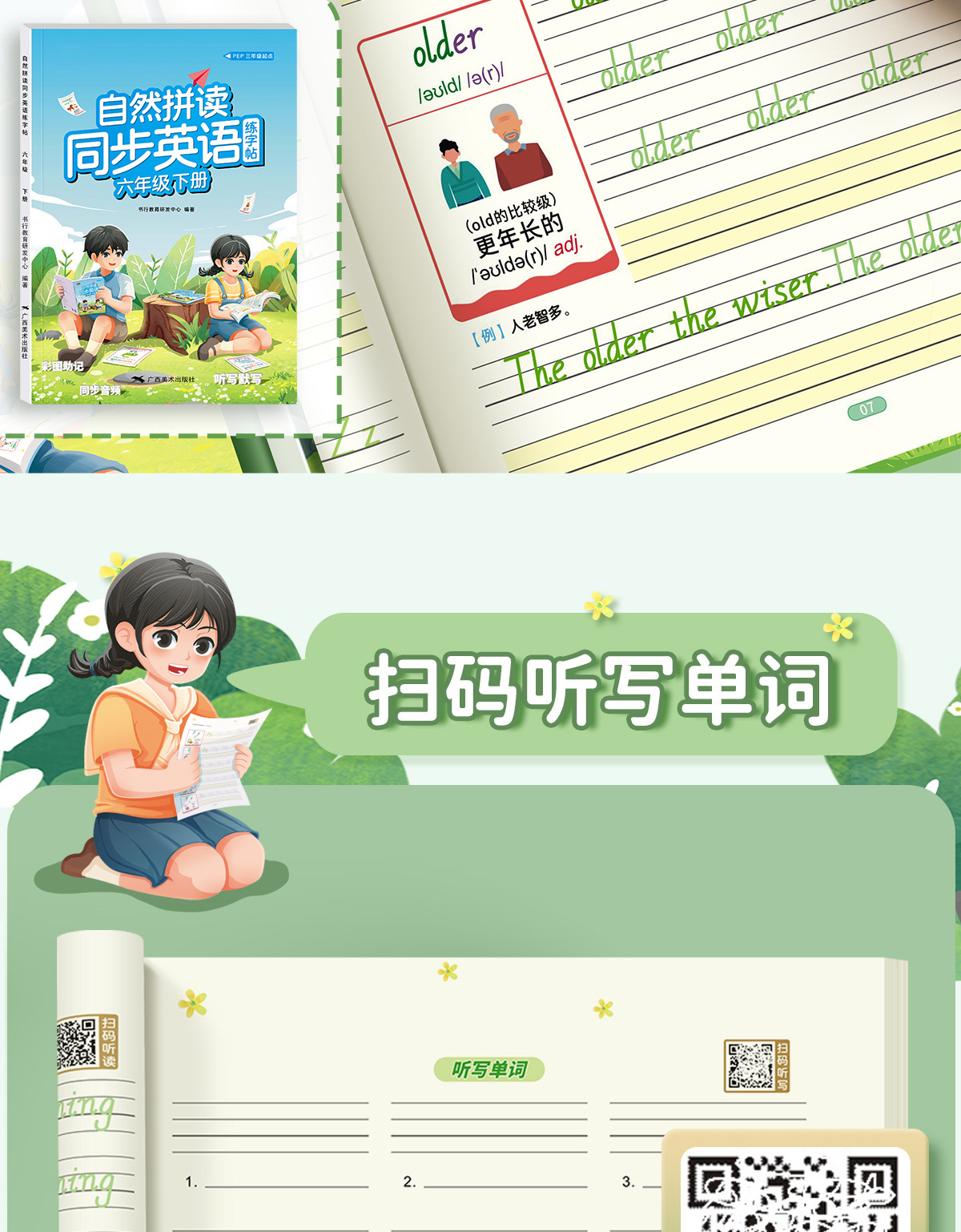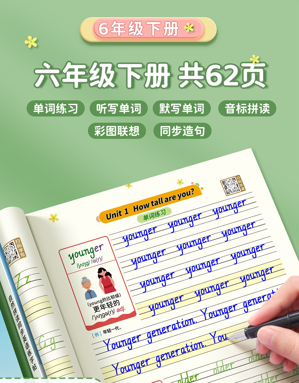 | second volume of grade 6 english copybook + word memory notebook(六年级下册英语字帖+单词记忆本) | USD $3.64 | 6284 piece available |