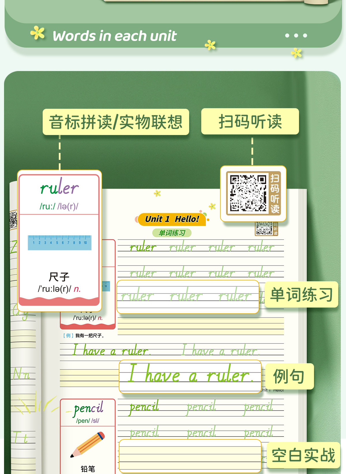 | fourth grade volume 1 english copybook + word memory notebook(四年级上册英语字帖+单词记忆本) | USD $3.64 | 11891 piece available |
