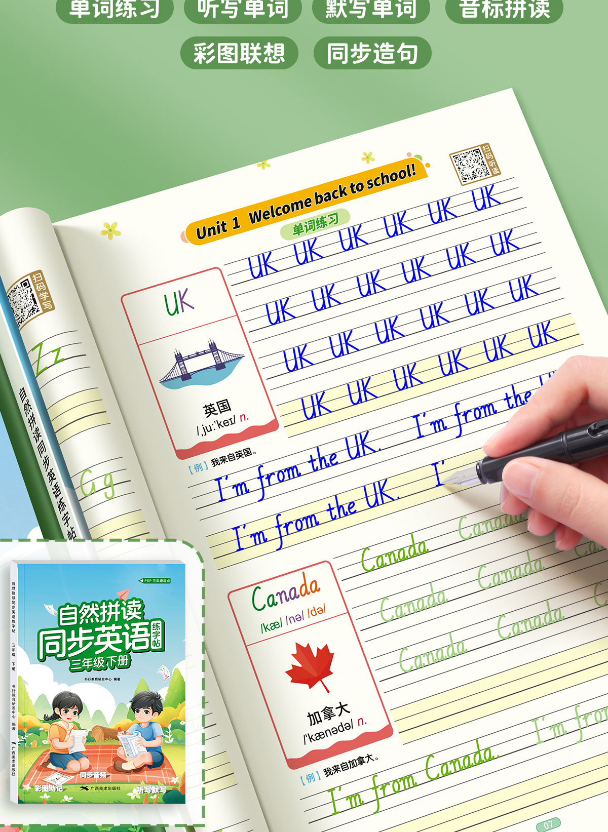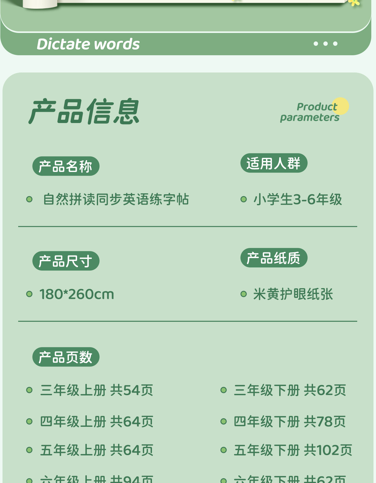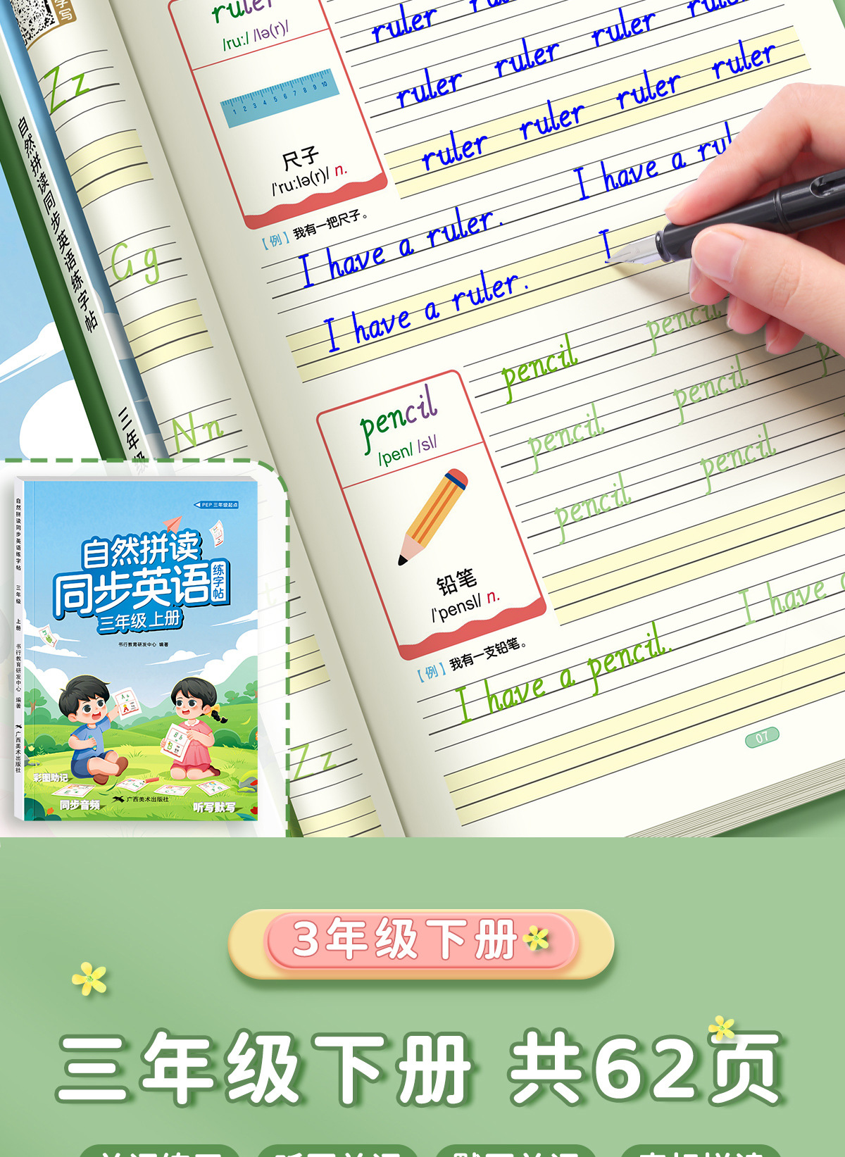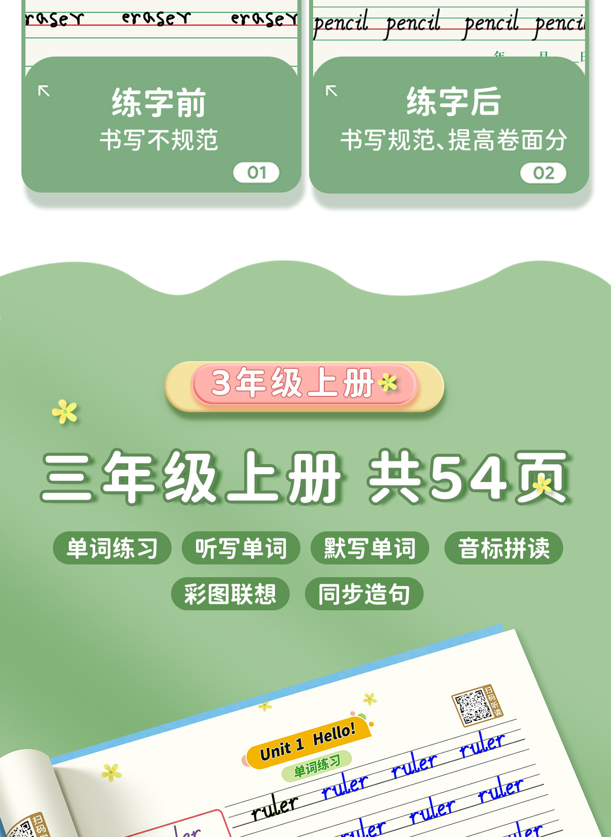 | grade 3 volume 1 english copybook + word memory notebook(三年级上册英语字帖+单词记忆本) | USD $3.64 | 7144 piece available |