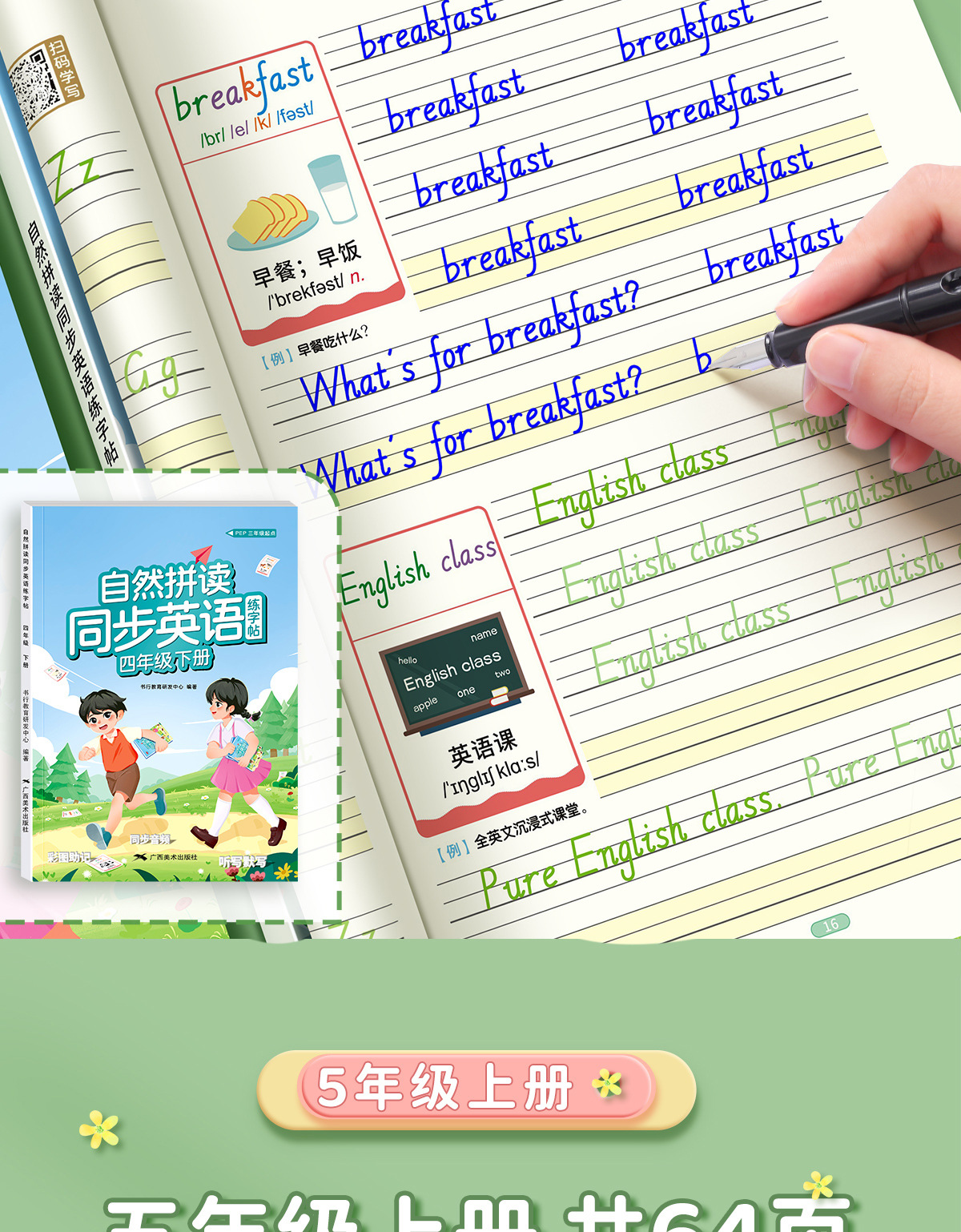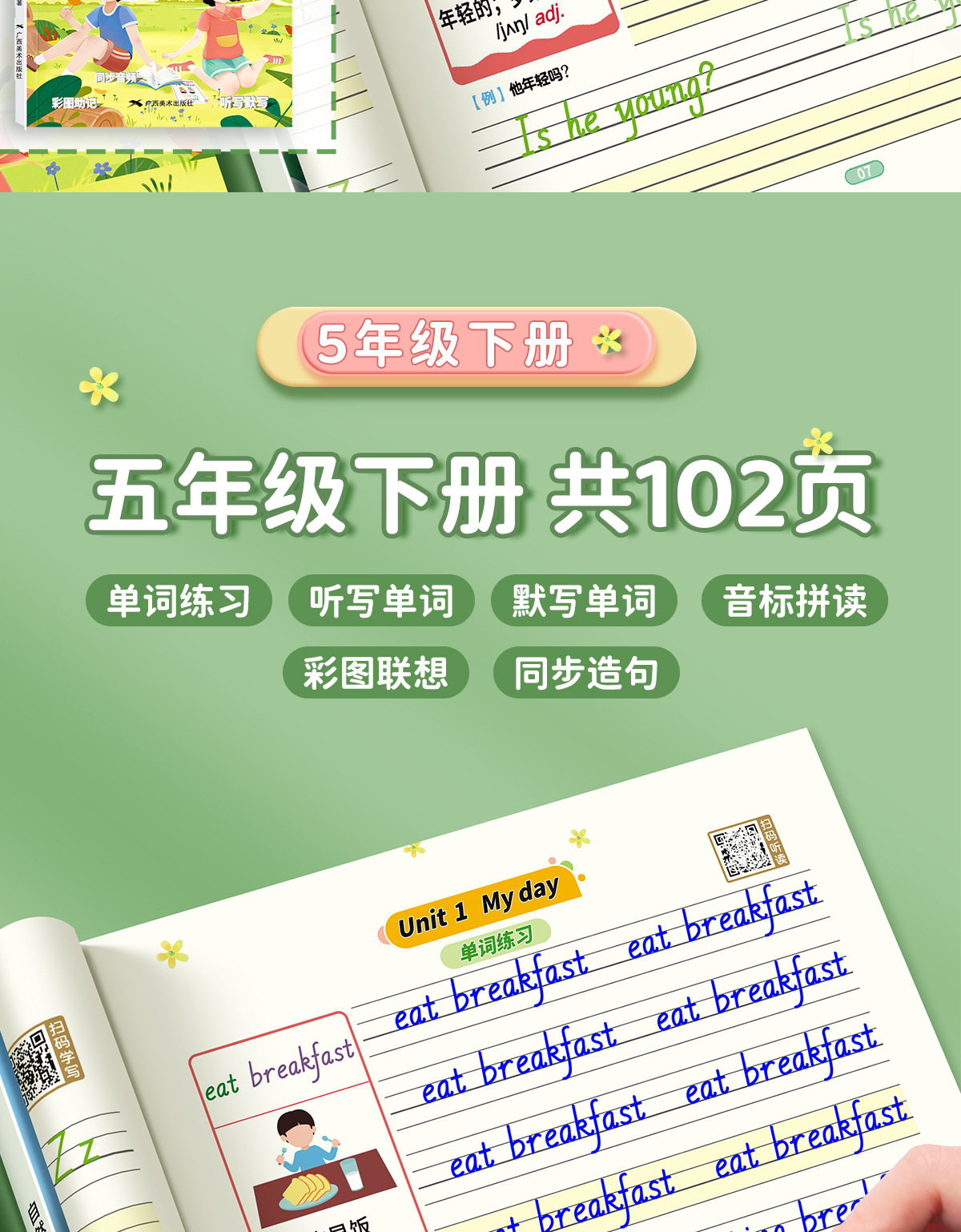 | second volume of grade 5 english copybook + word memory notebook(五年级下册英语字帖+单词记忆本) | USD $3.64 | 14648 piece available |