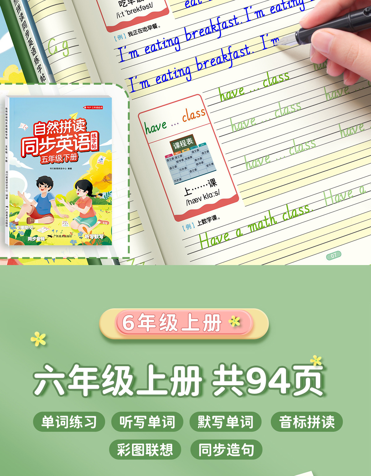 | grade 6 first and second volumes english copybook + word memory notebook(六年级上下册英语字帖+单词记忆本) | USD $5.88 | 4380 piece available |