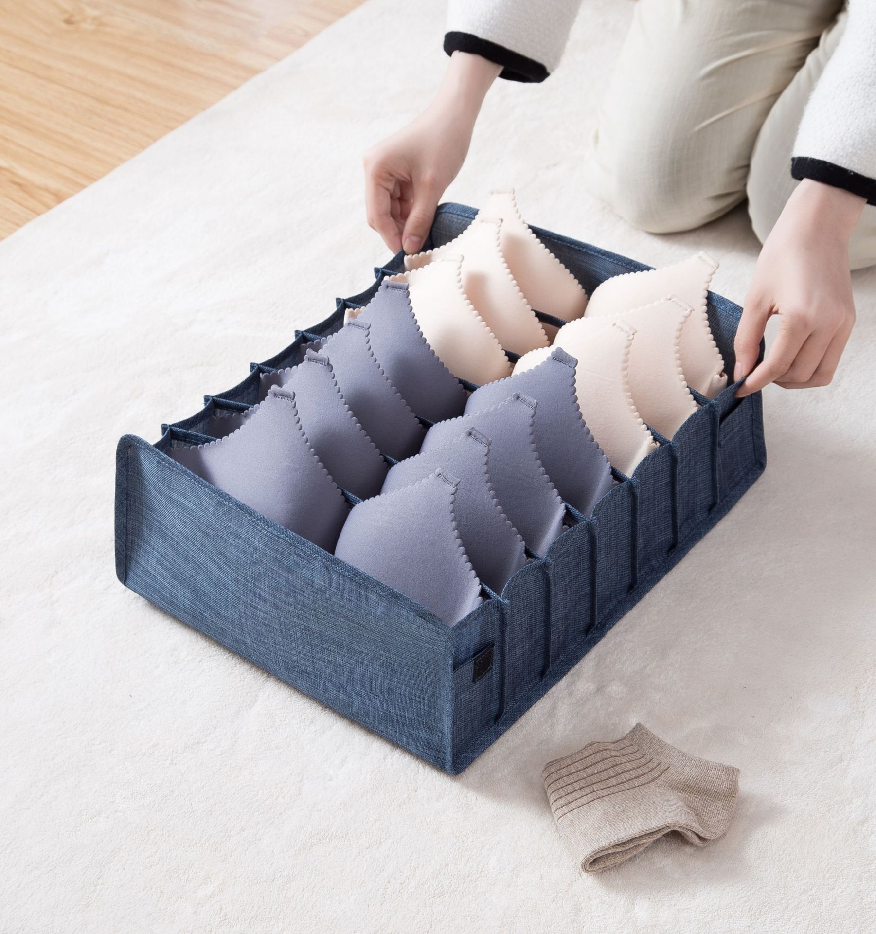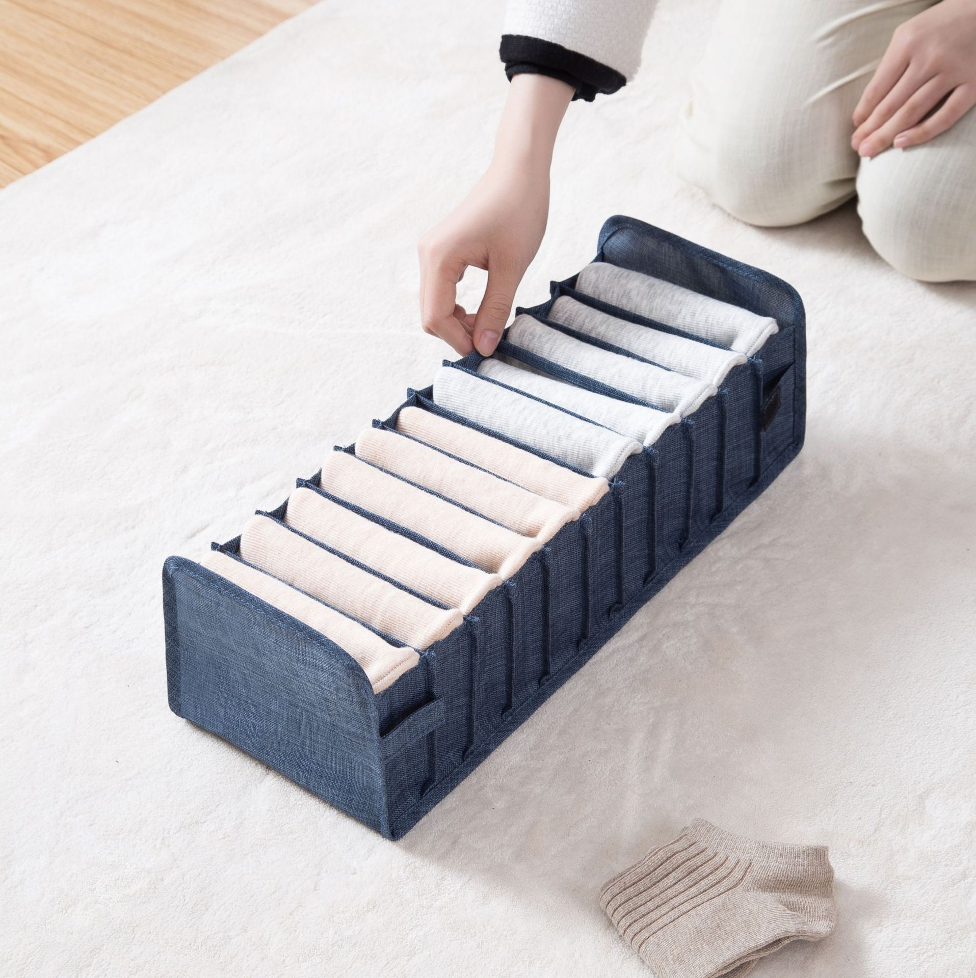 欧式布艺内衣收纳盒 寝室抽屉式可折叠收纳盒分格十格整理收纳盒