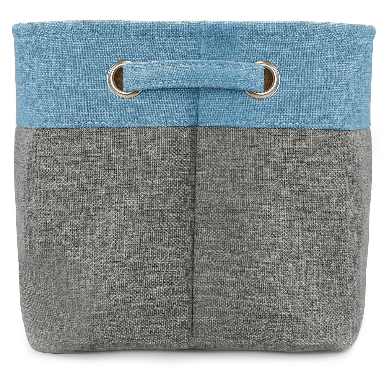 水蓝色可折叠日式棉麻布艺收纳篮衣服收纳箱玩具储物盒汽车收纳箱