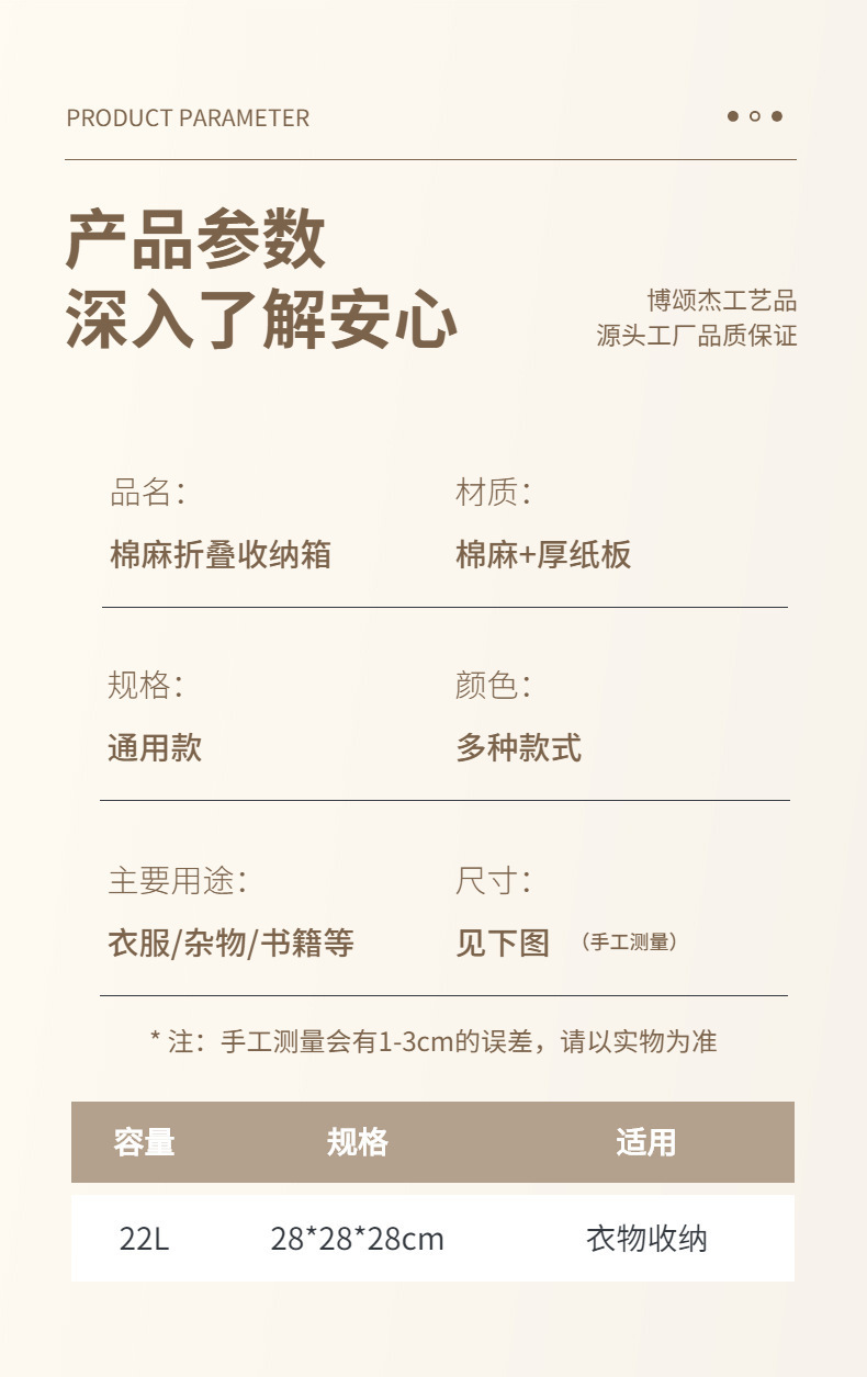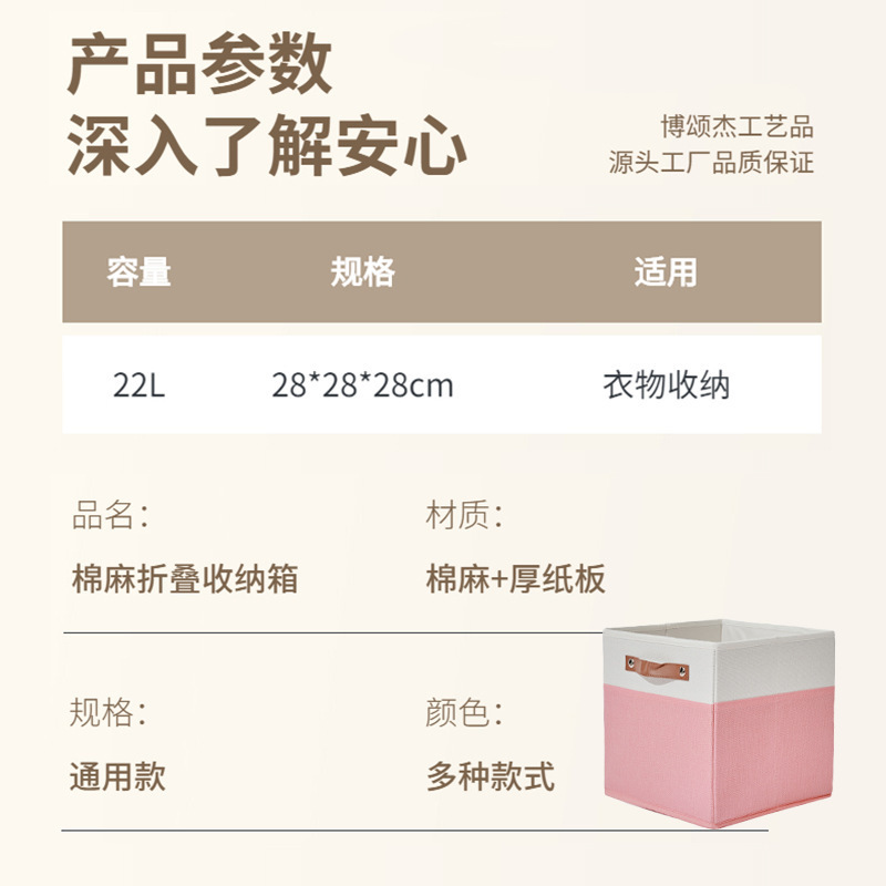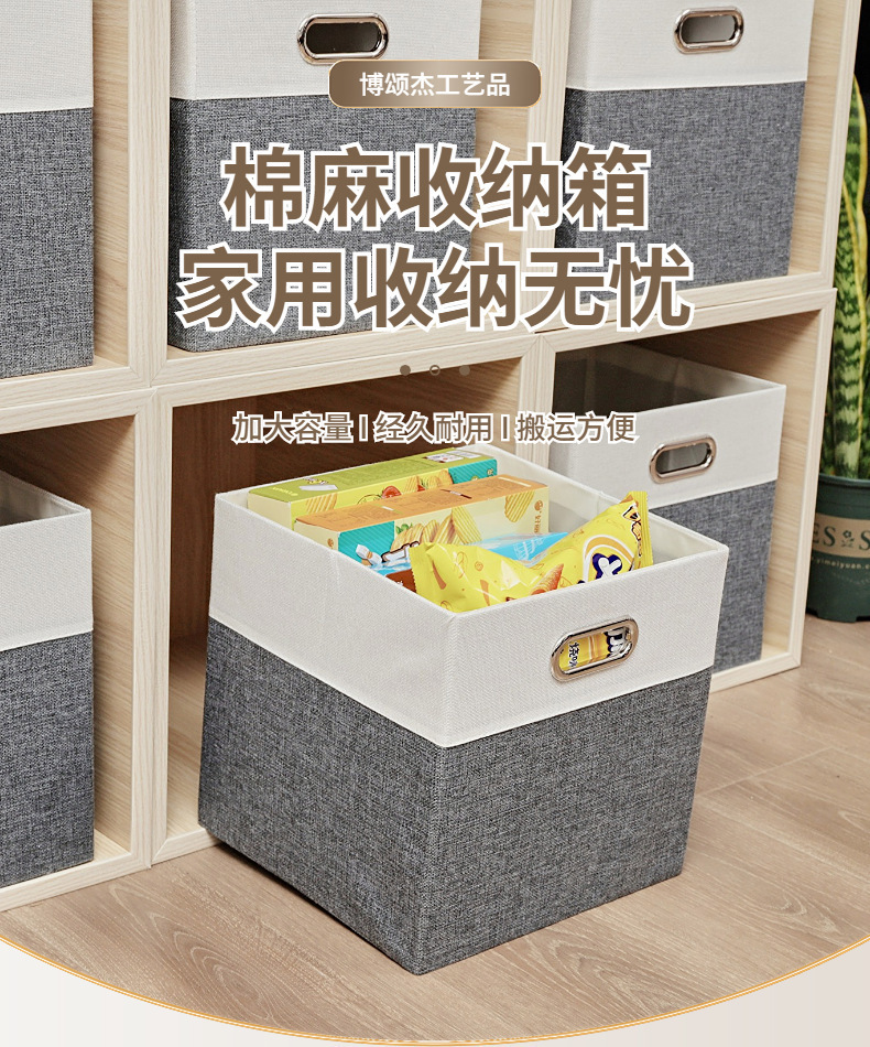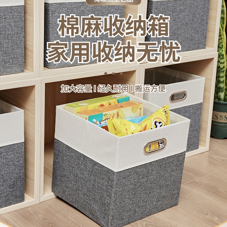 棉麻收纳箱大号可折叠家用客厅杂物桌面化妆品脏衣服收纳篮