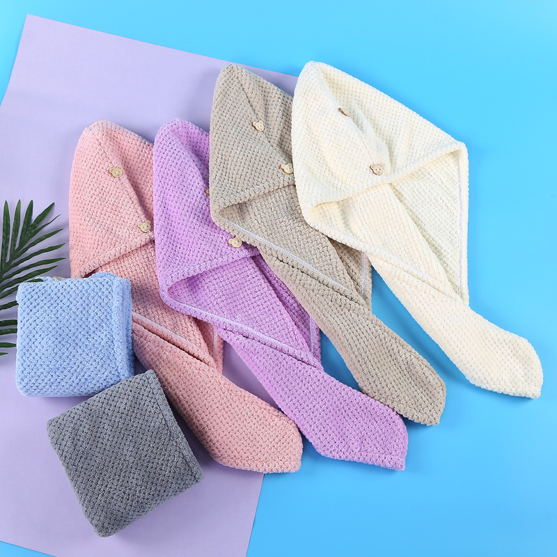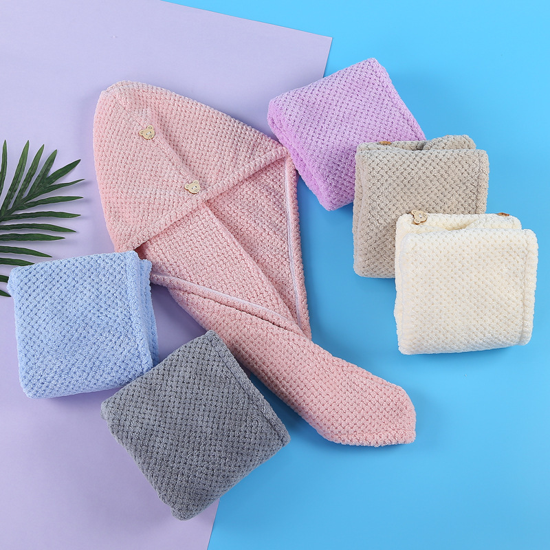 新款菠萝格吸水干发帽珊瑚绒干发帽吸水性好柔软舒适素色女式浴帽