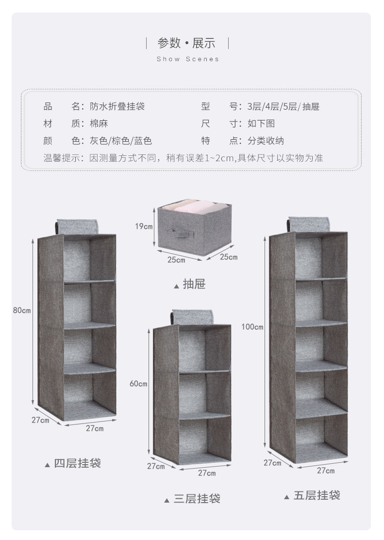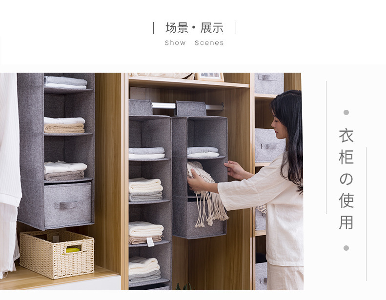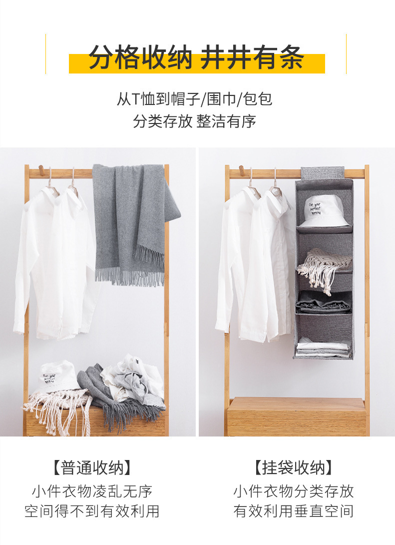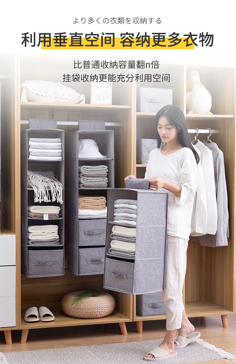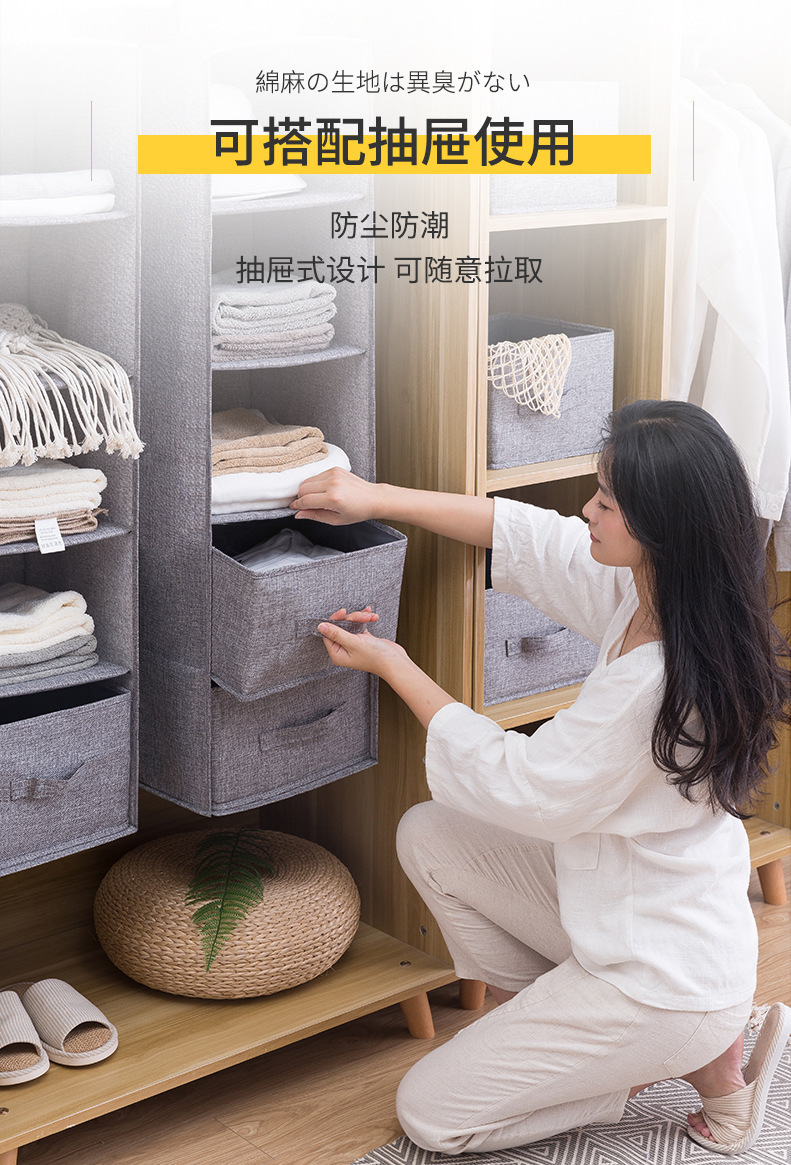 衣柜收纳挂袋棉麻家用衣物立式整理多层抽屉内衣衣服收纳袋多功能