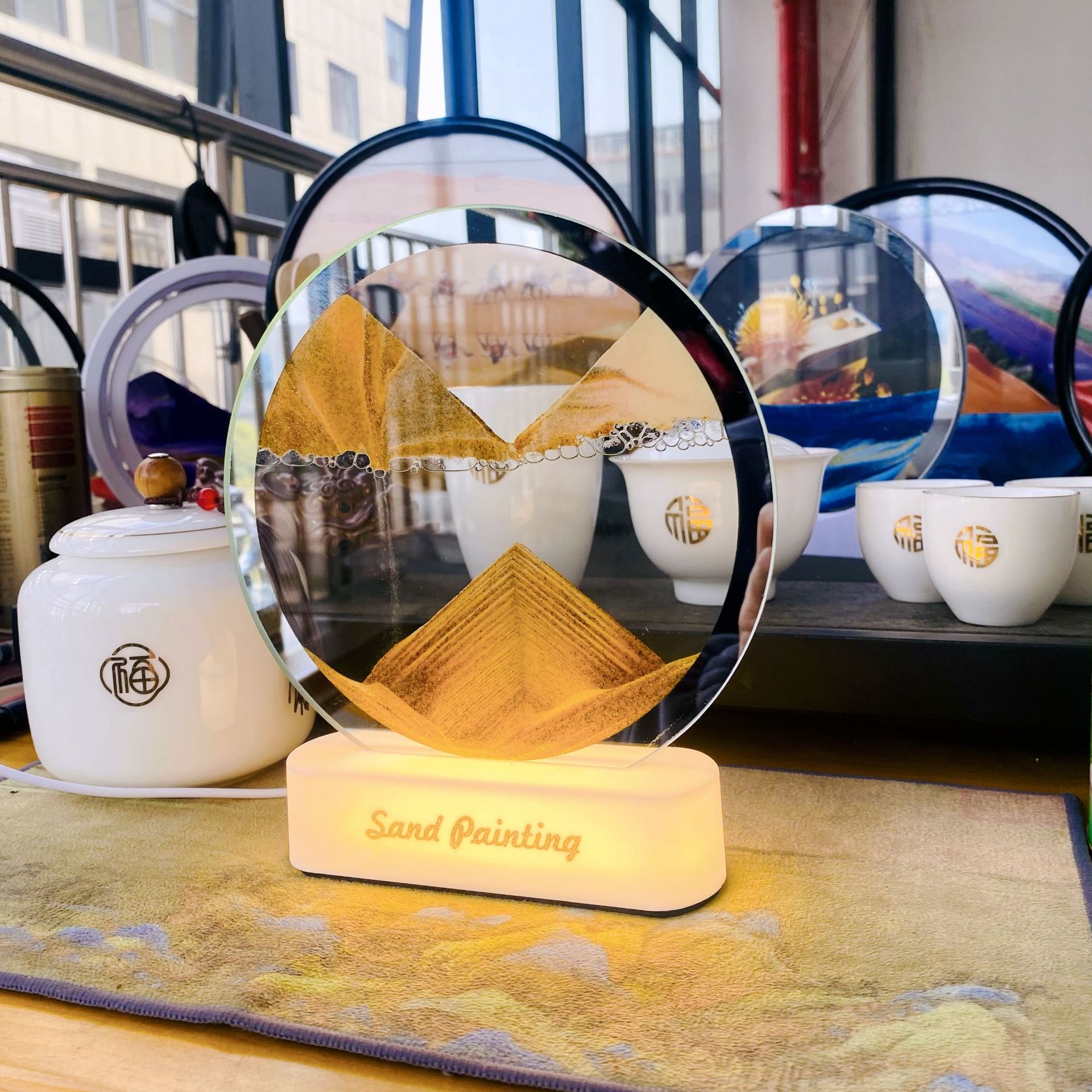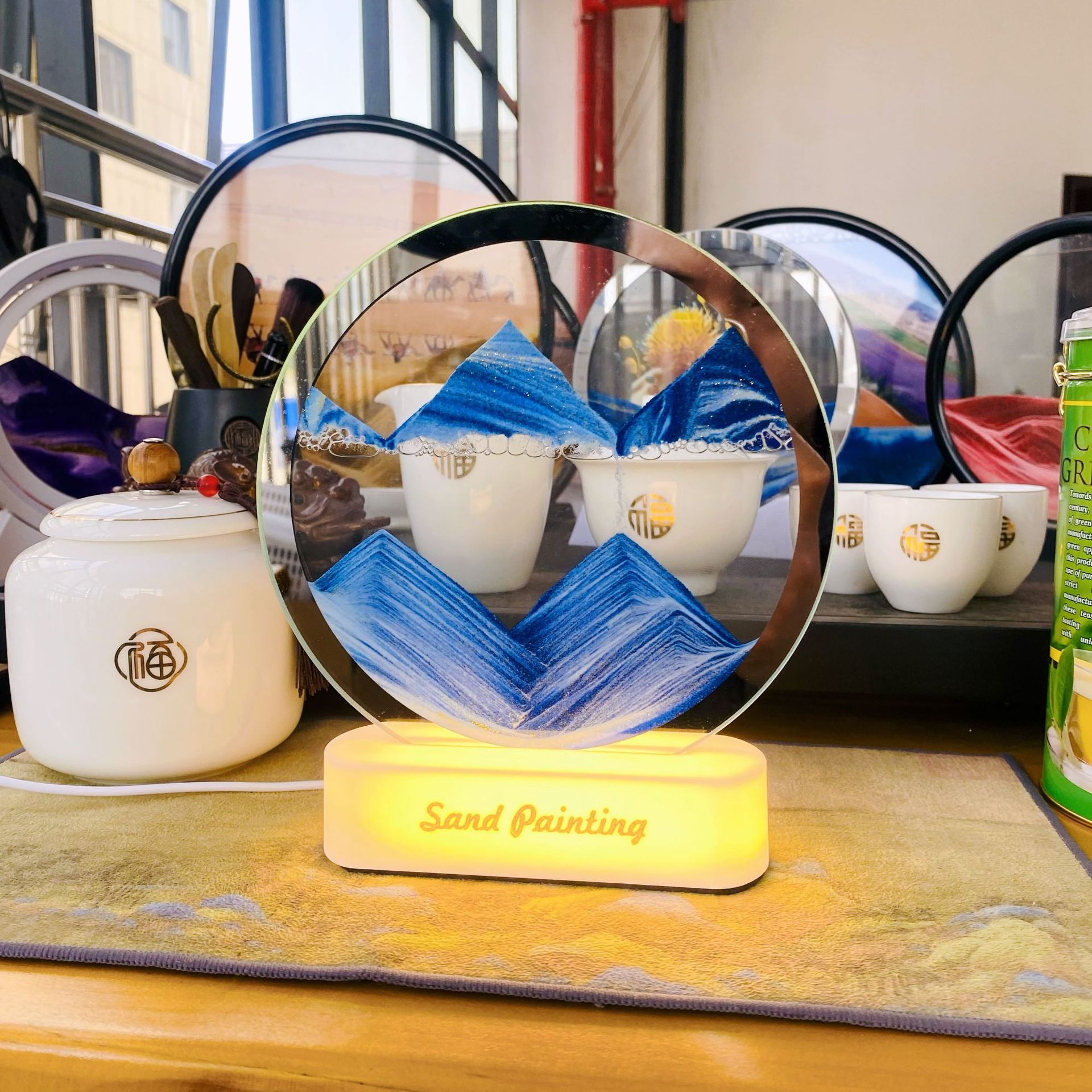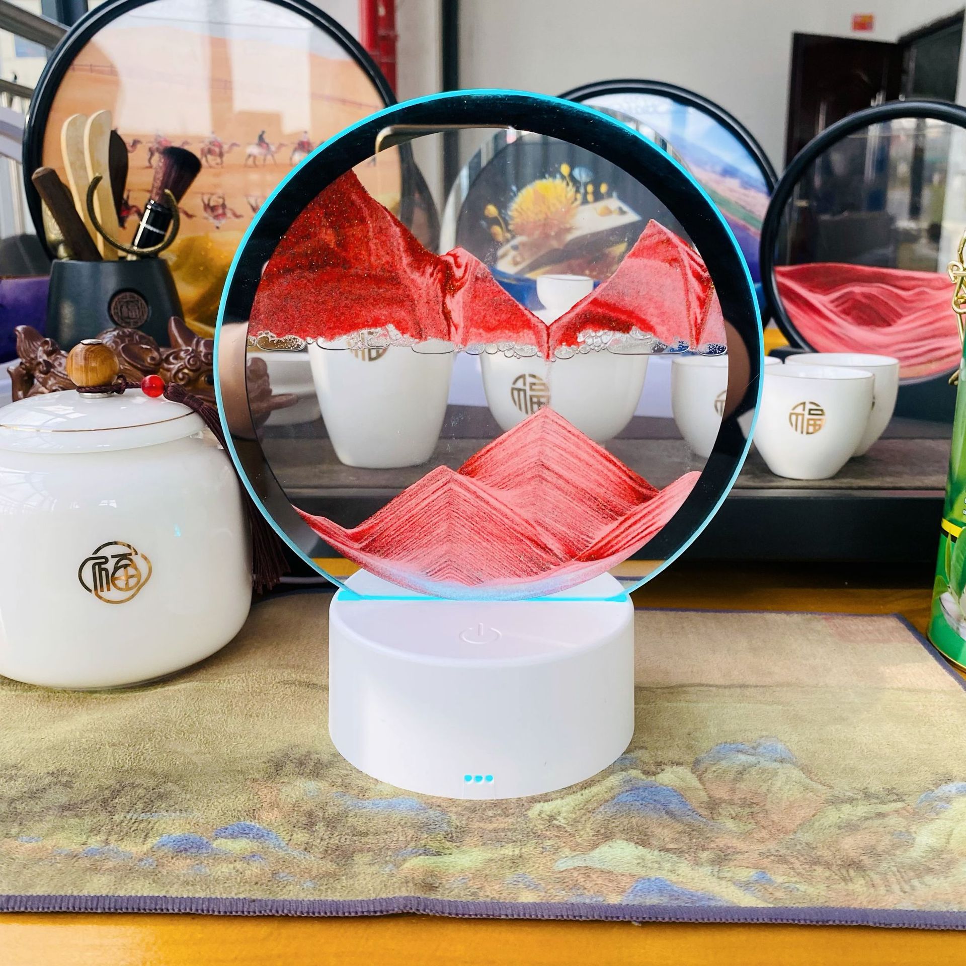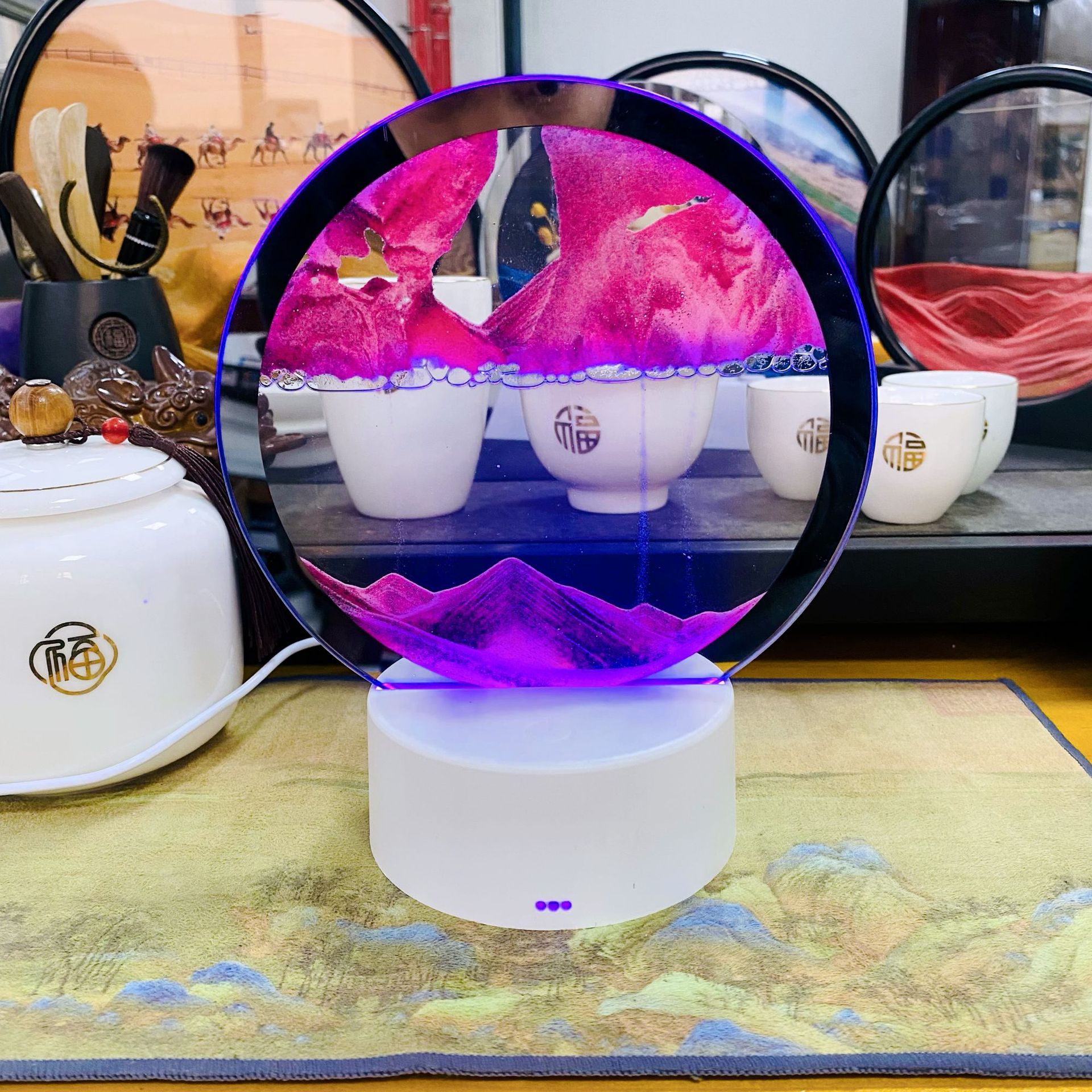 工厂跨境3D流沙画小夜灯摆件动态沙漏台灯立体创意解压遥控触摸款