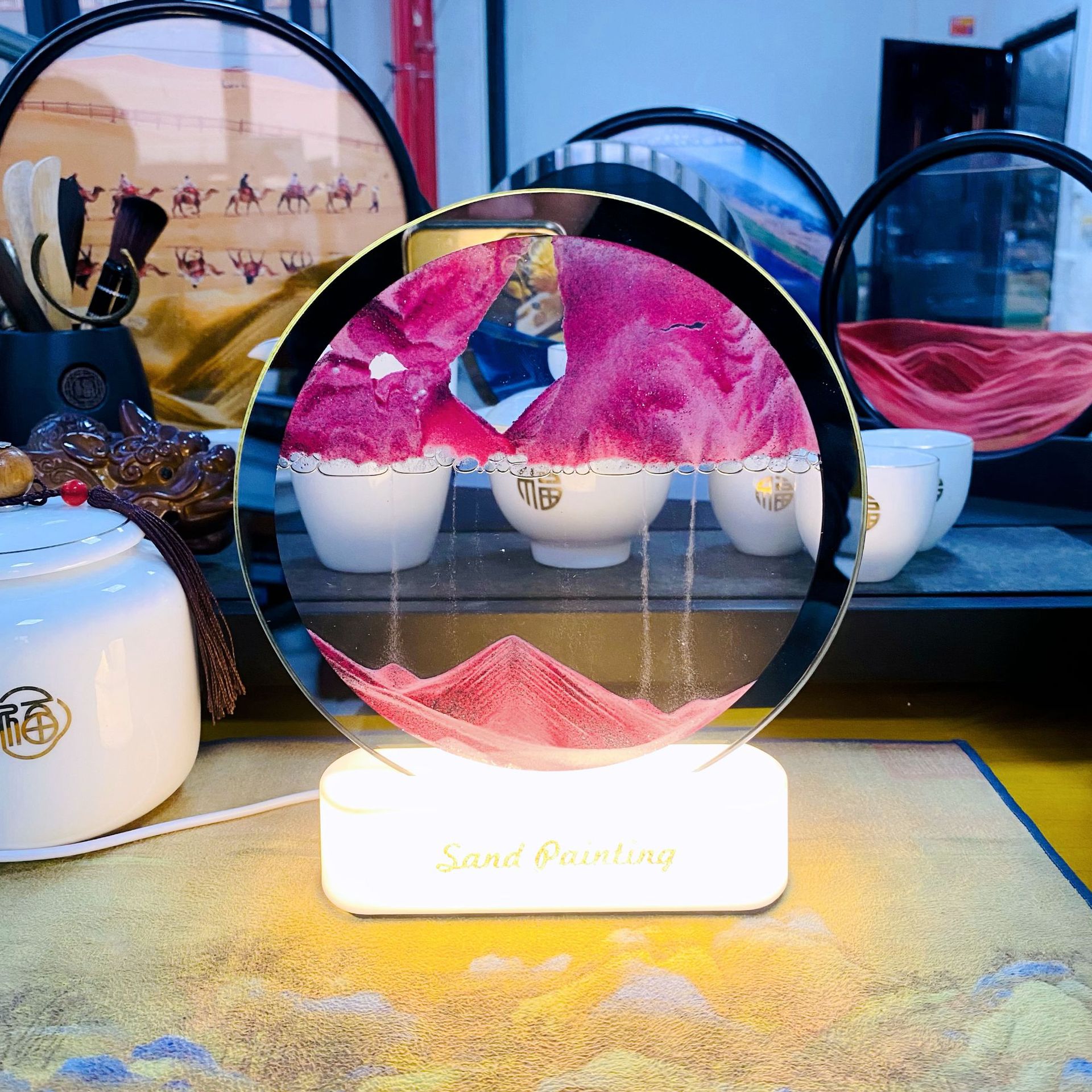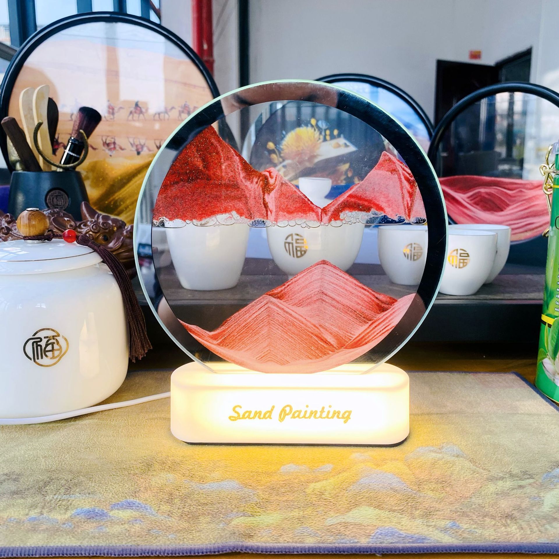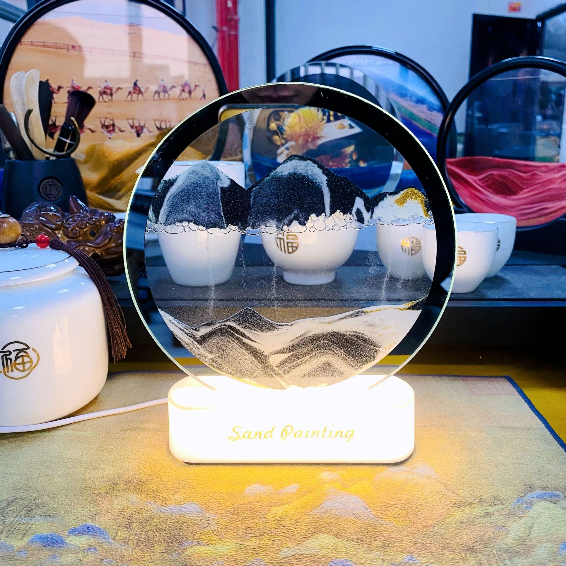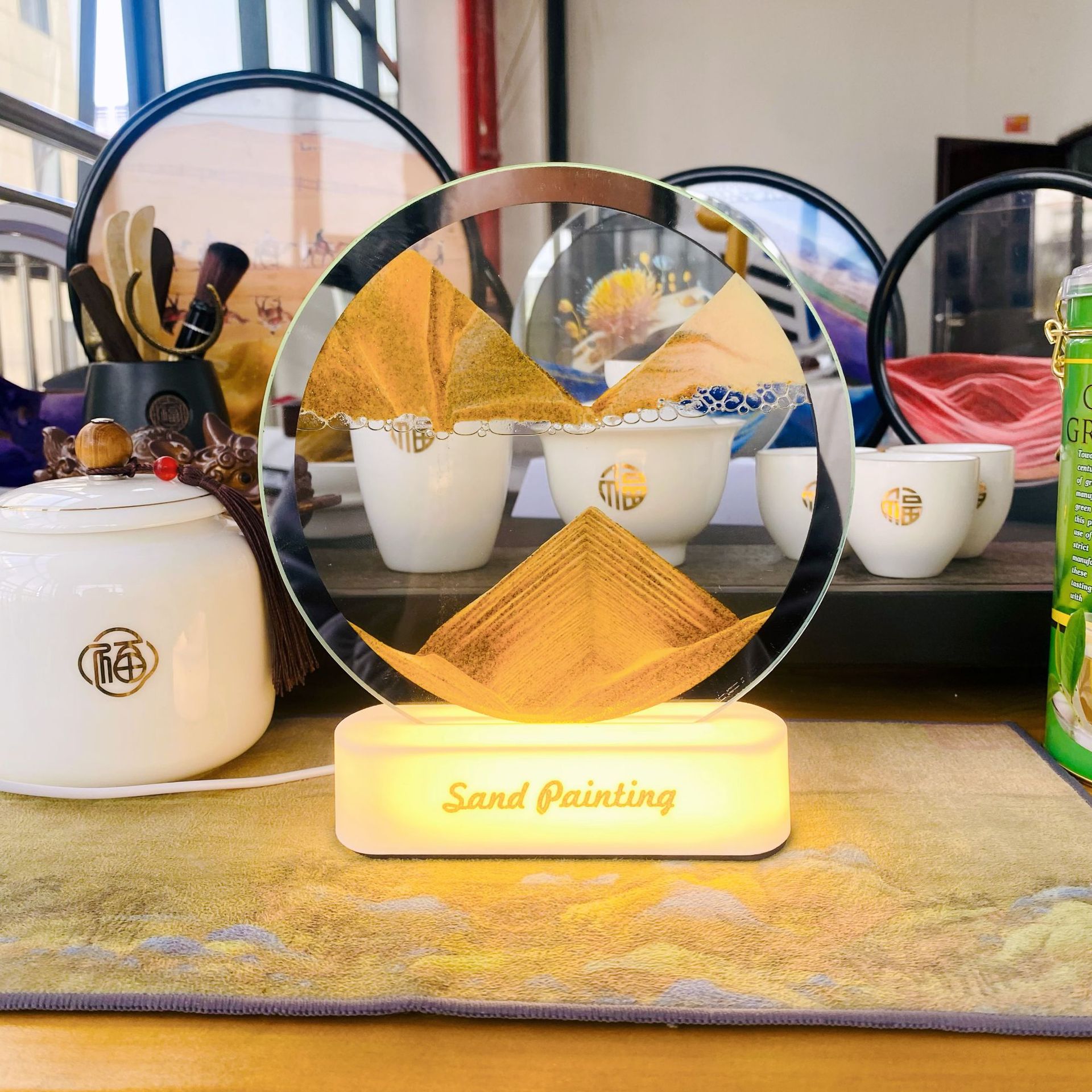 工厂跨境3D流沙画小夜灯摆件动态沙漏台灯立体创意解压遥控触摸款