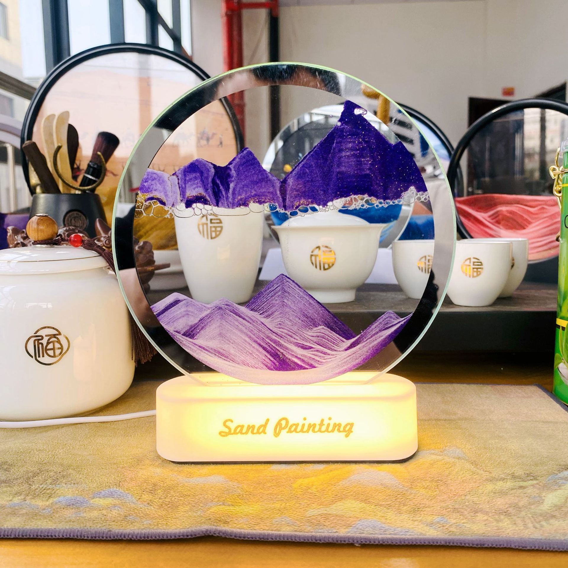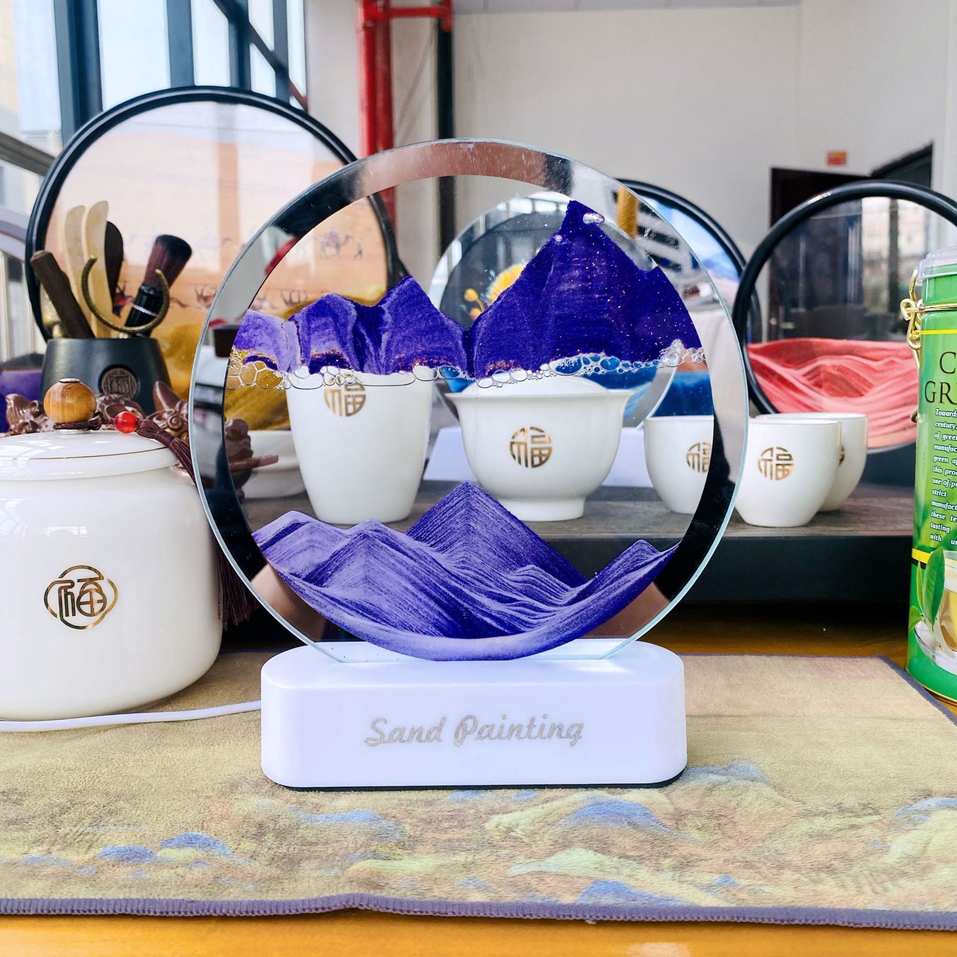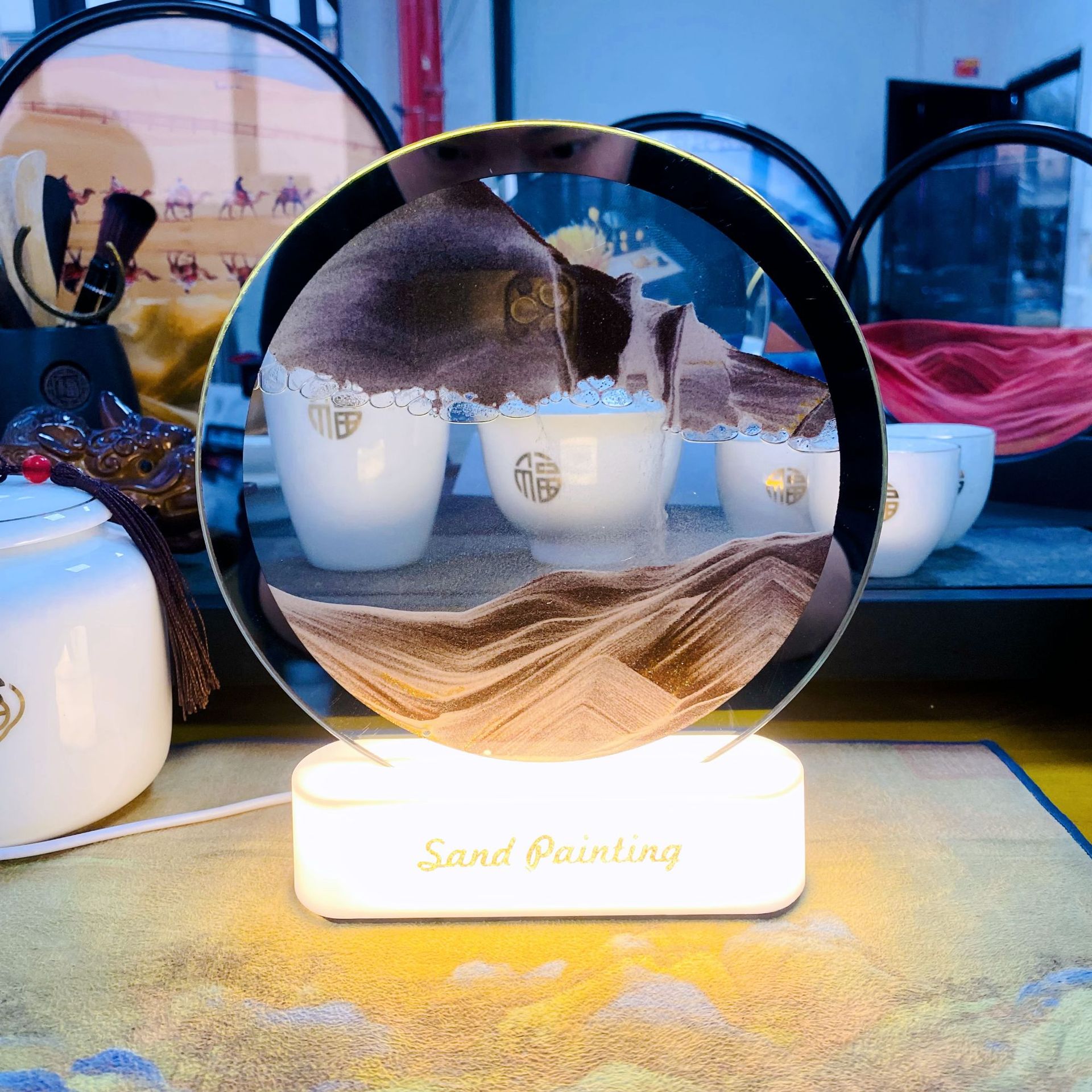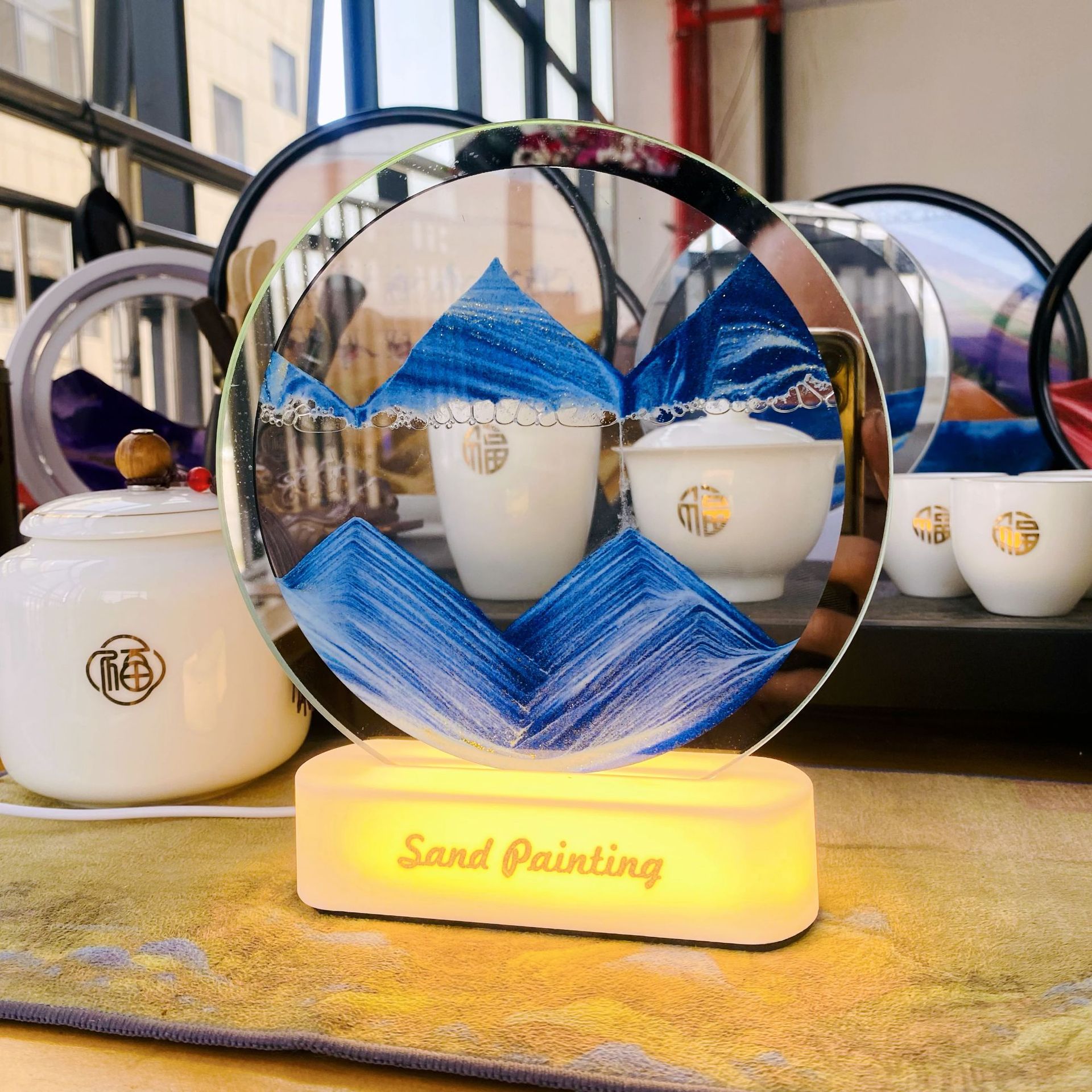 工厂跨境3D流沙画小夜灯摆件动态沙漏台灯立体创意解压遥控触摸款