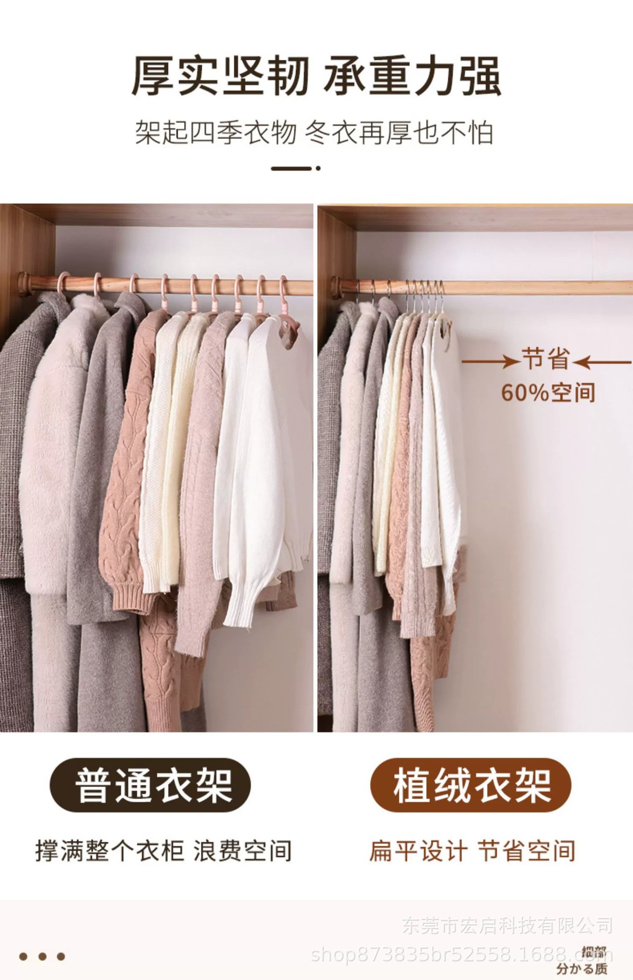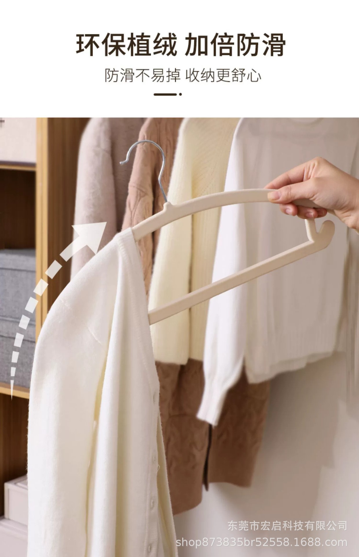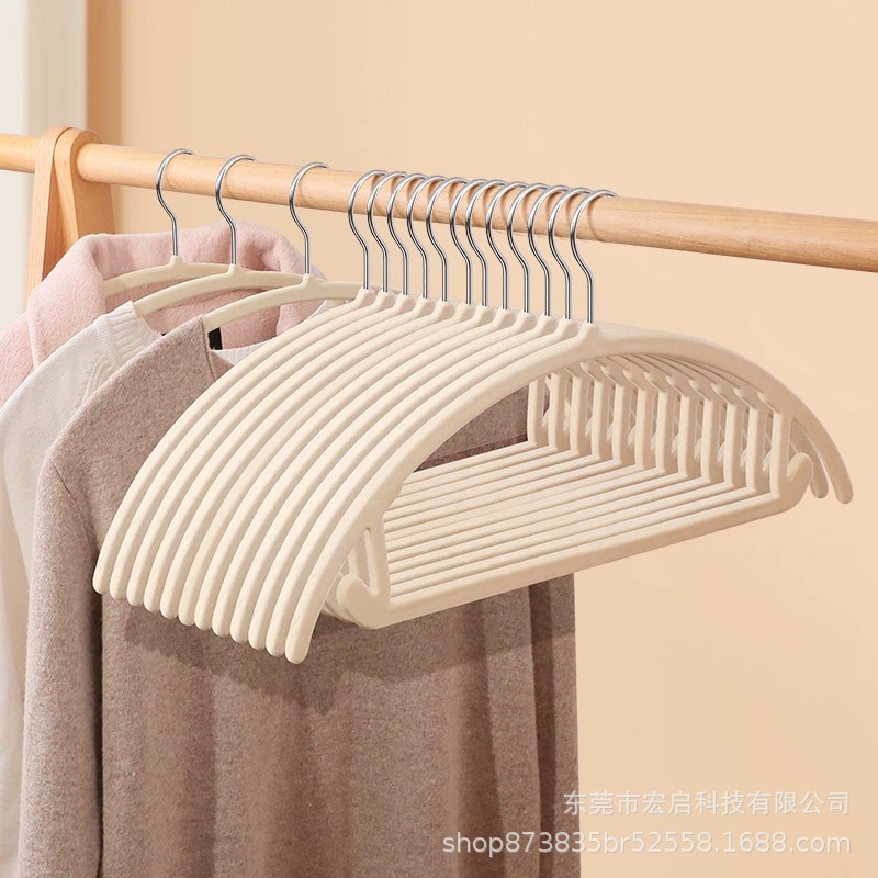 塑料弧形植绒衣架加粗款防滑无痕收纳衣架子家用衣撑衣挂衣服架子