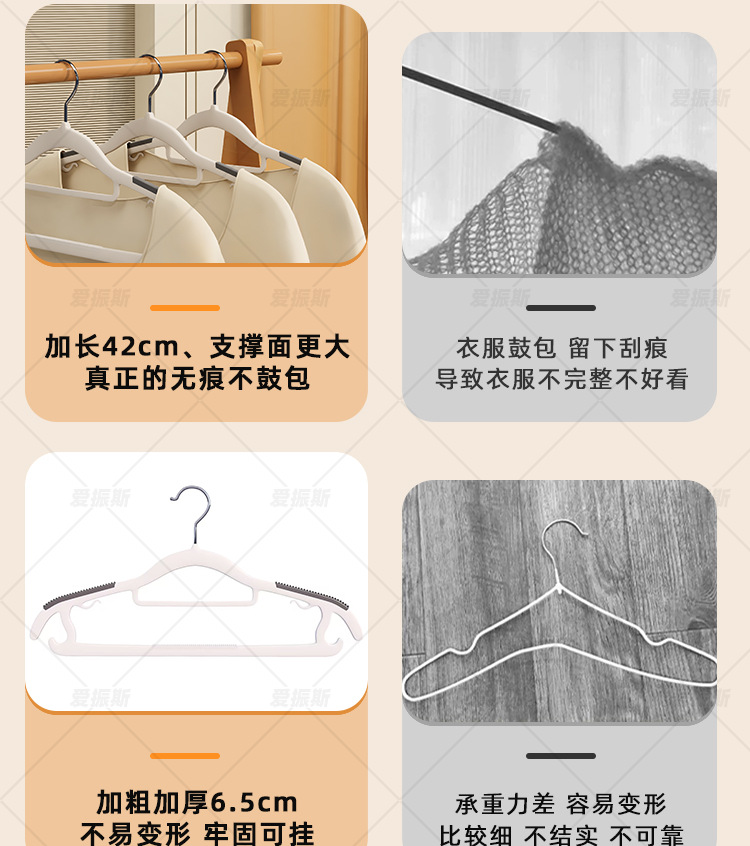 塑料衣架家用加粗款无痕挂衣架防滑收纳衣服架多功能衣挂衣撑批发