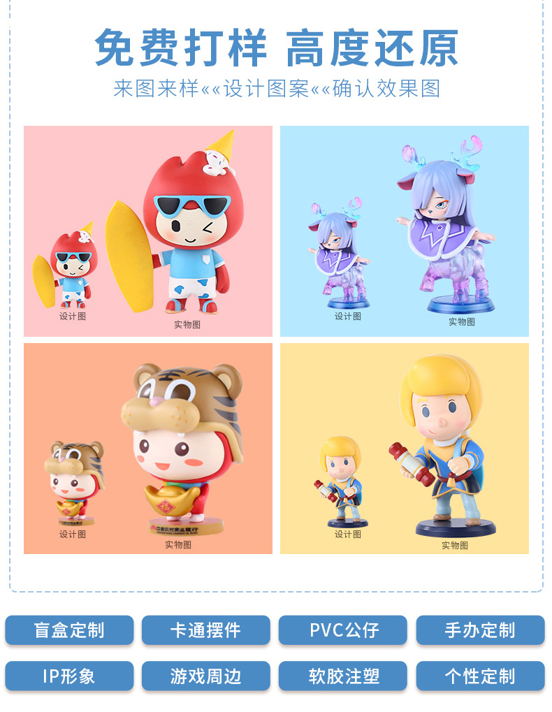 公仔定制盲盒PVC手办企业IP潮流摆件手机支架钥匙扣来图来样定做