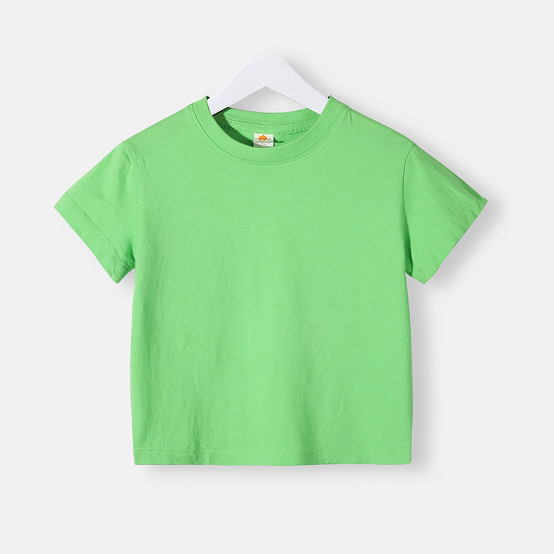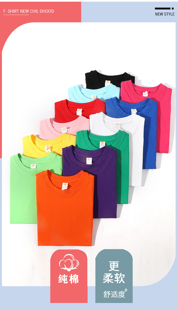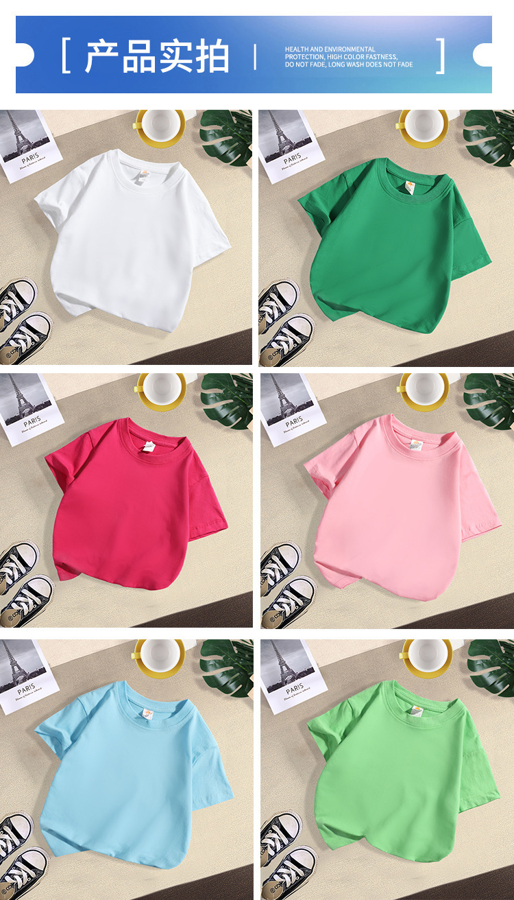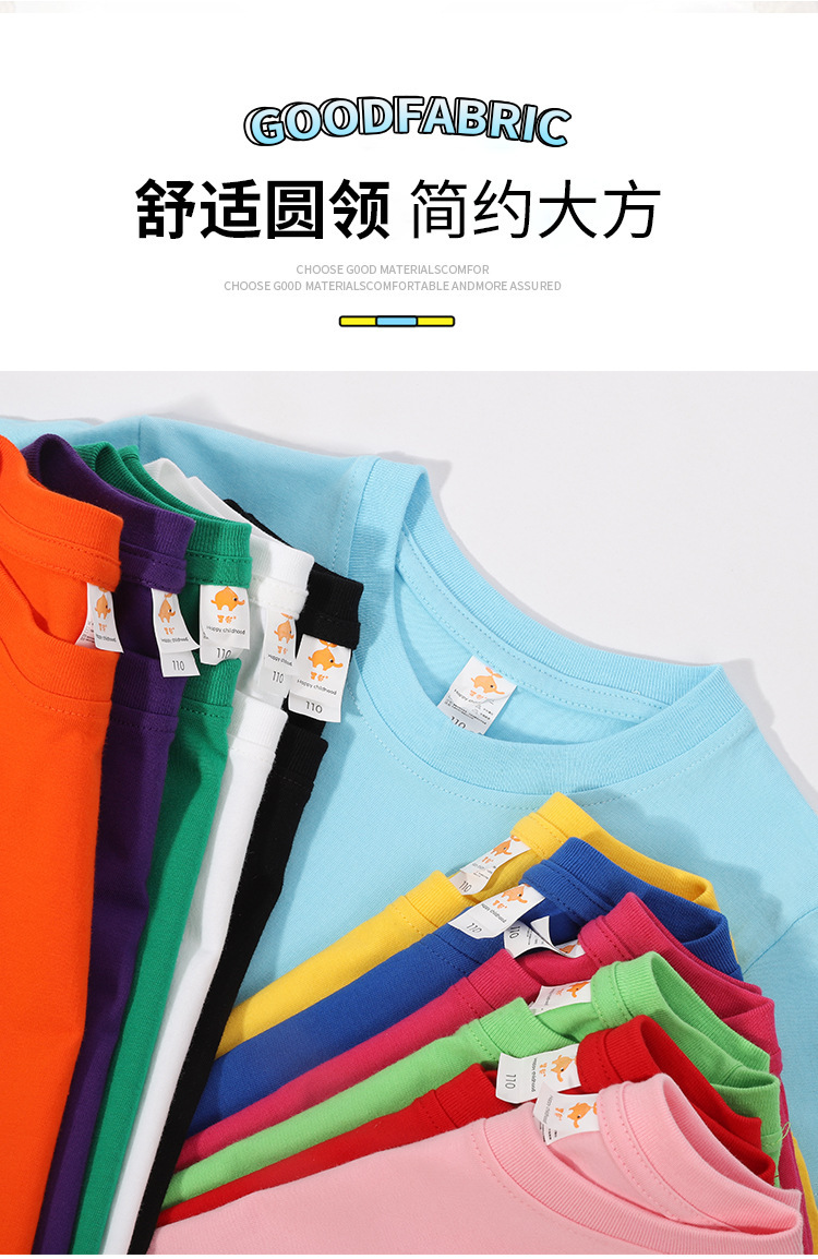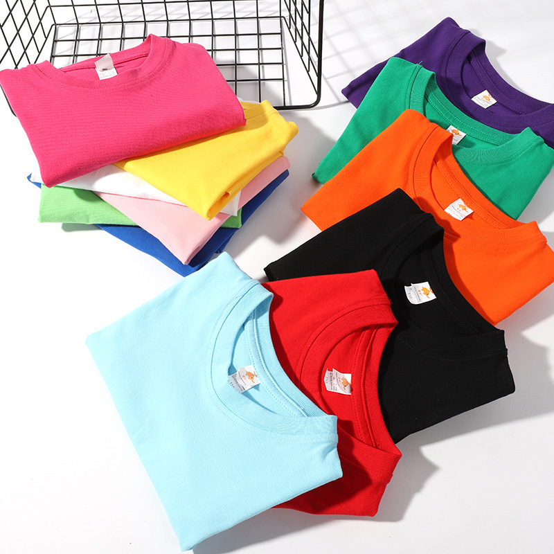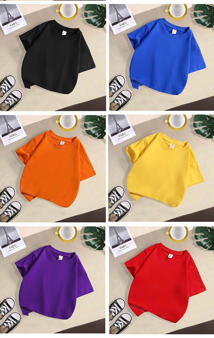 现货180克纯棉中大儿童t恤印字图logo幼儿园纯白色圆领短袖批发夏
