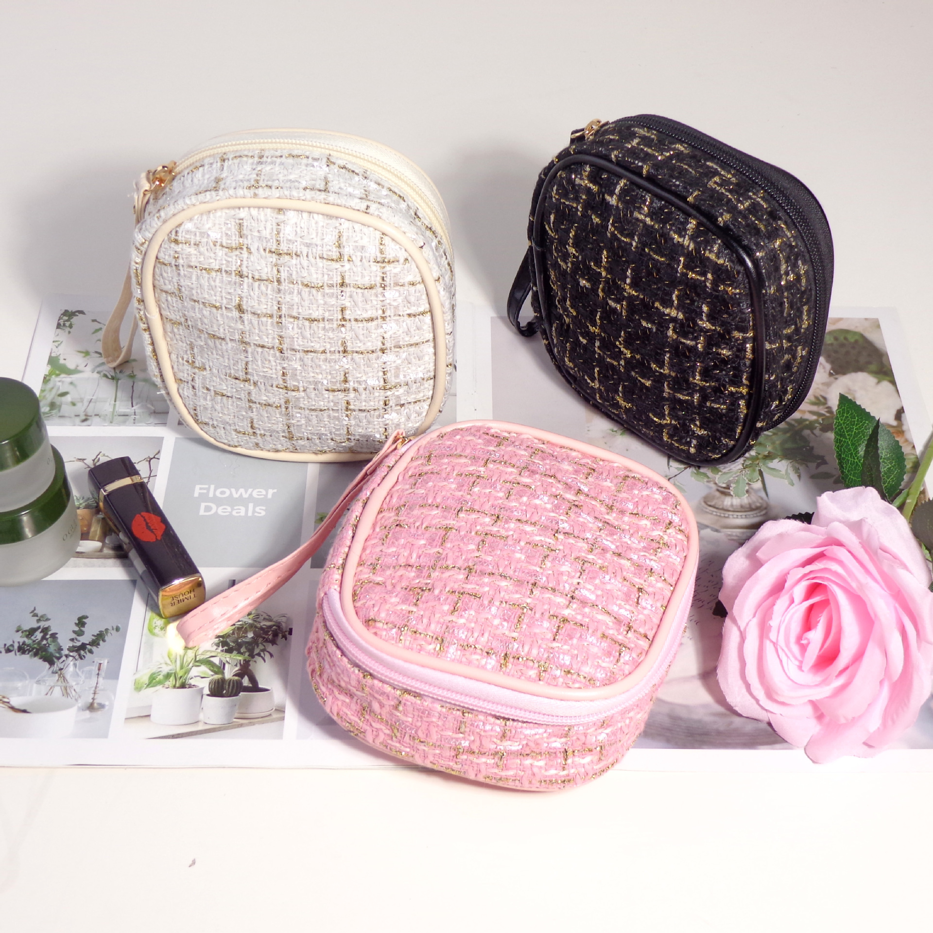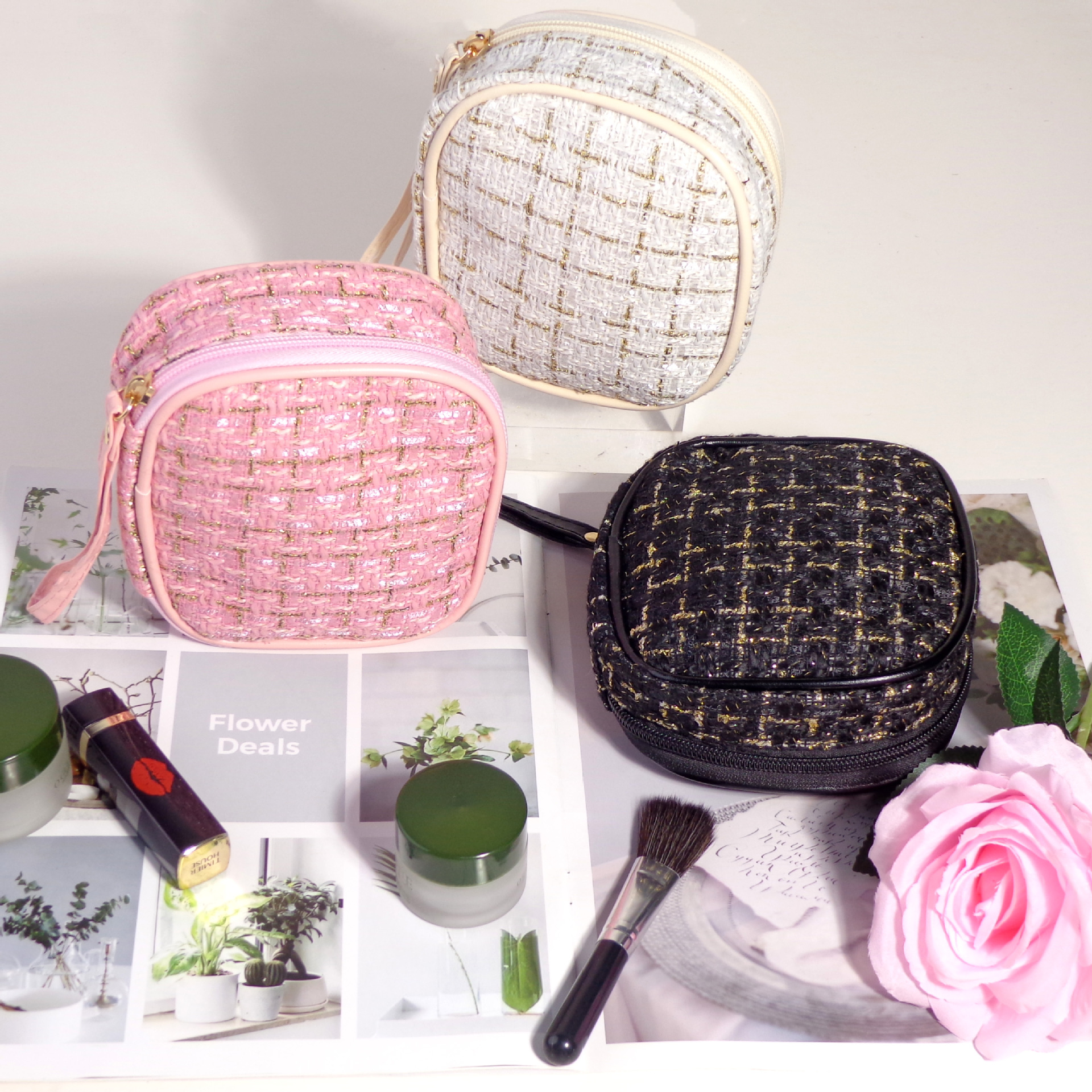 时尚毛呢小香风口红女士化妆品收纳包迷你姨妈巾月事卫生棉收纳袋