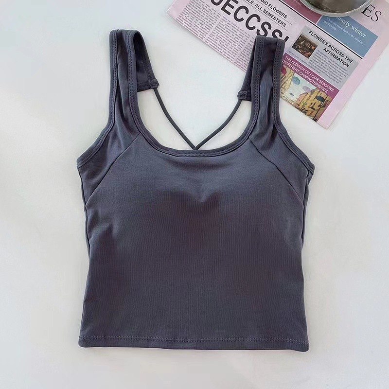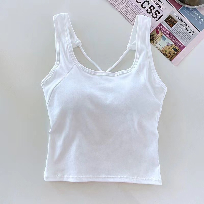 运动美背吊带背心女辣妹一体夏季纯棉外穿修身短款纯色打底衫