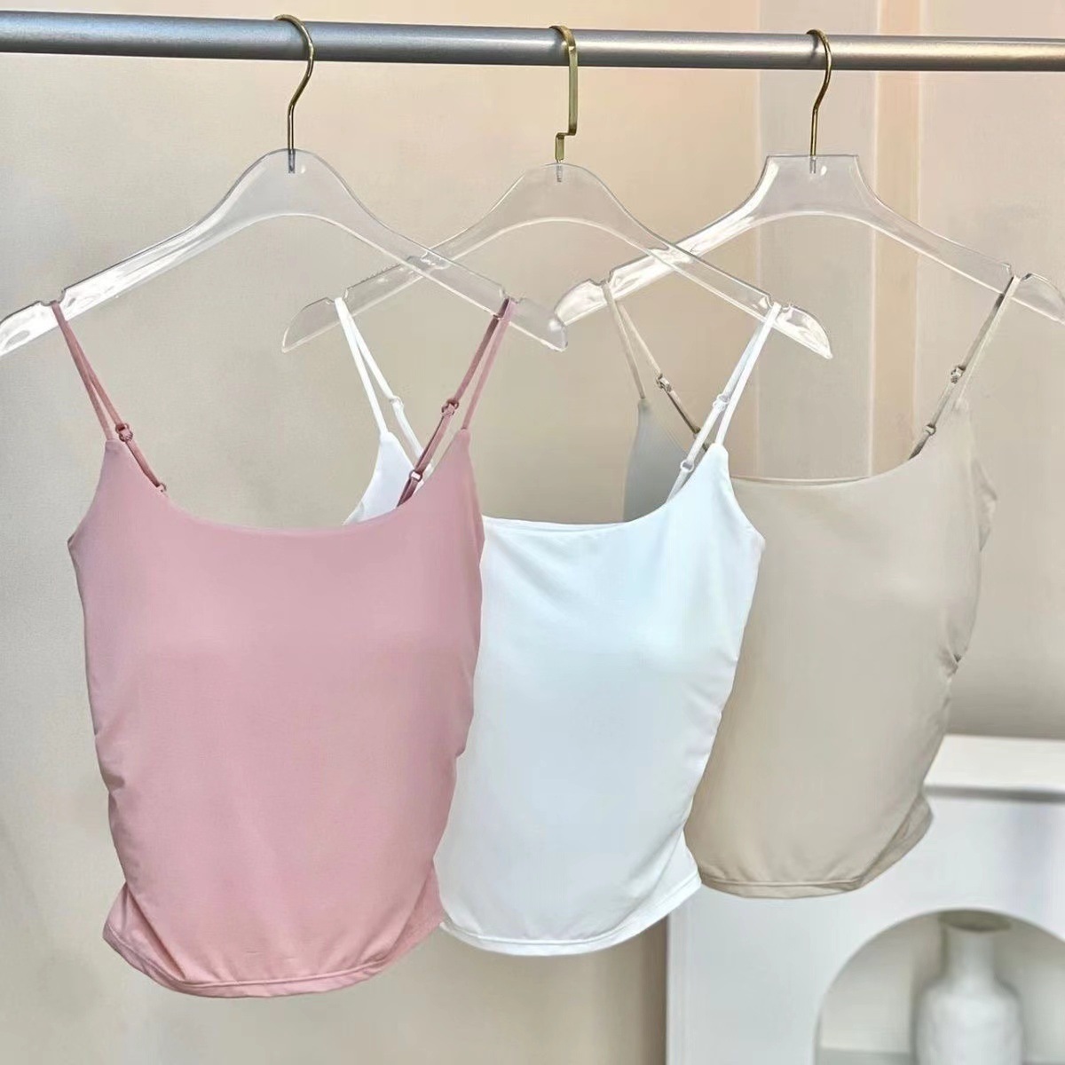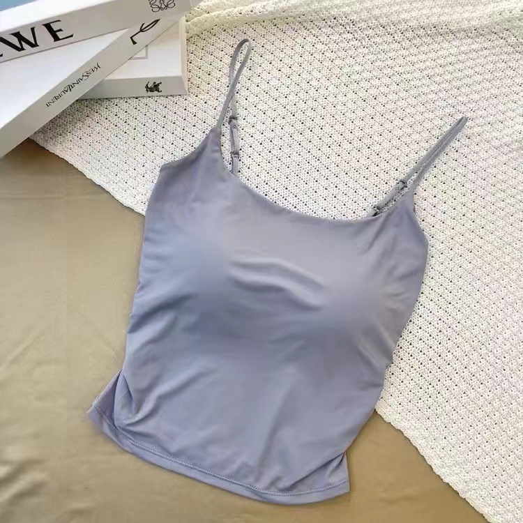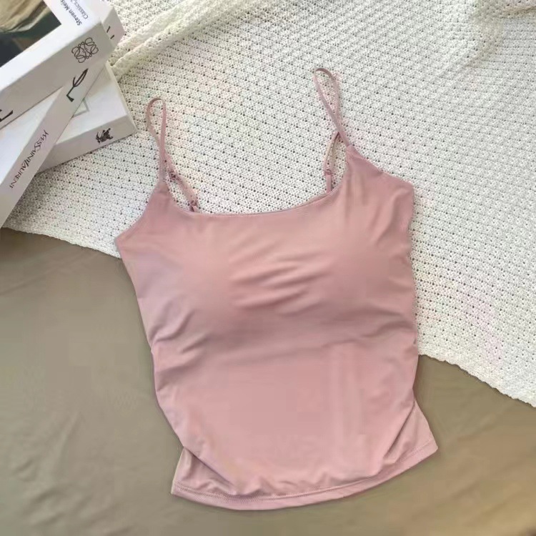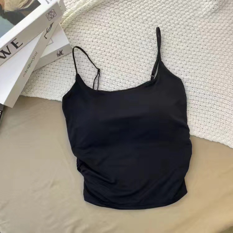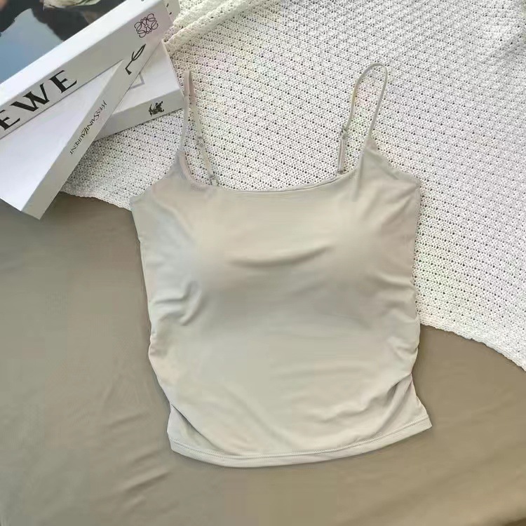 冰丝辣妹褶皱吊带背心女 带胸垫修身内搭外穿显瘦可调节肩带上衣
