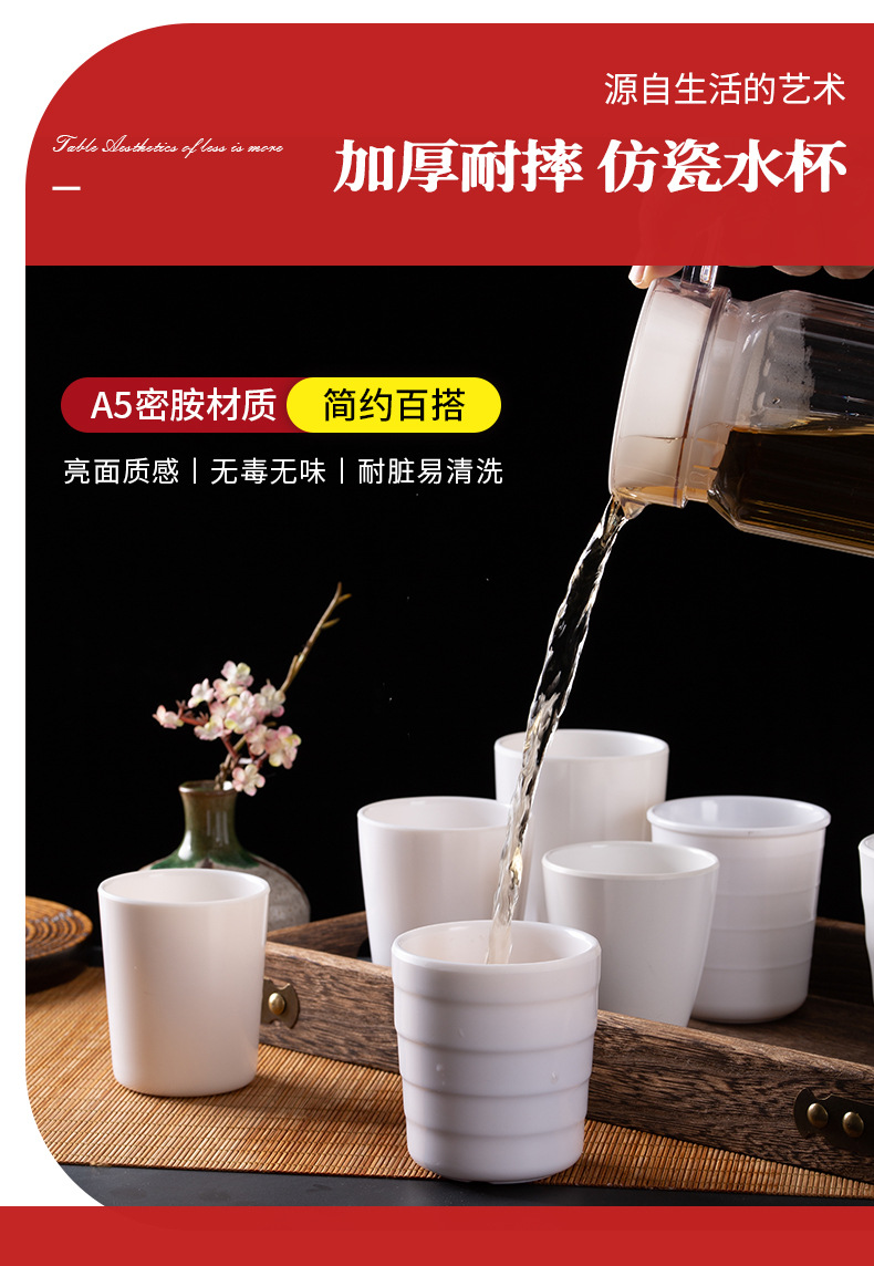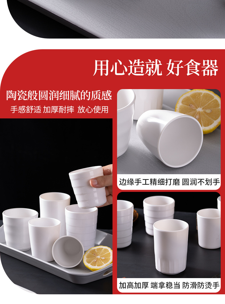 白色密胺杯子水杯直身杯餐厅创意个性牛奶杯耐摔茶杯子仿瓷塑料杯