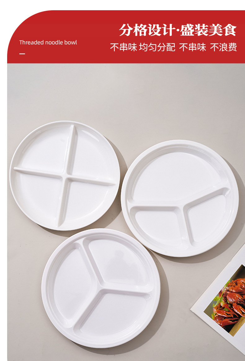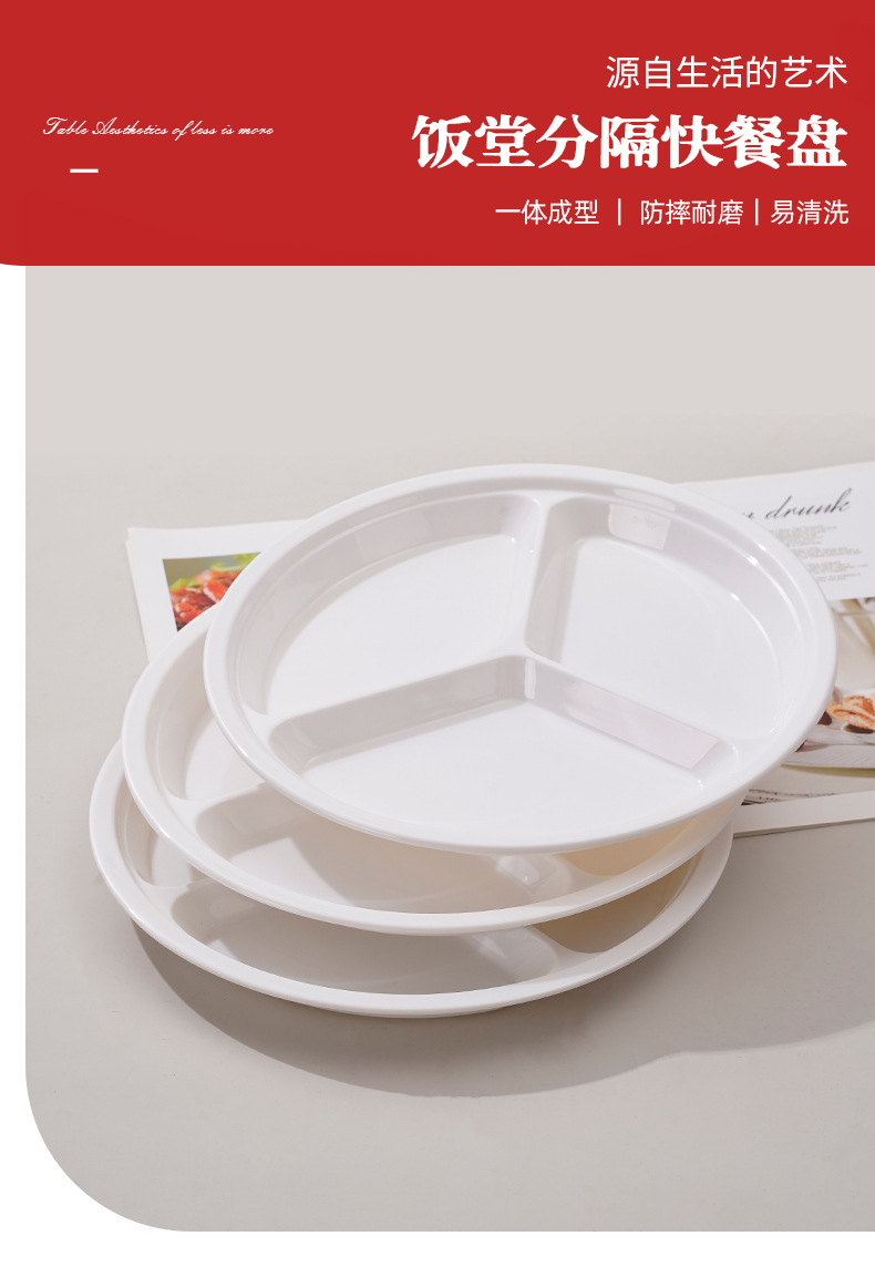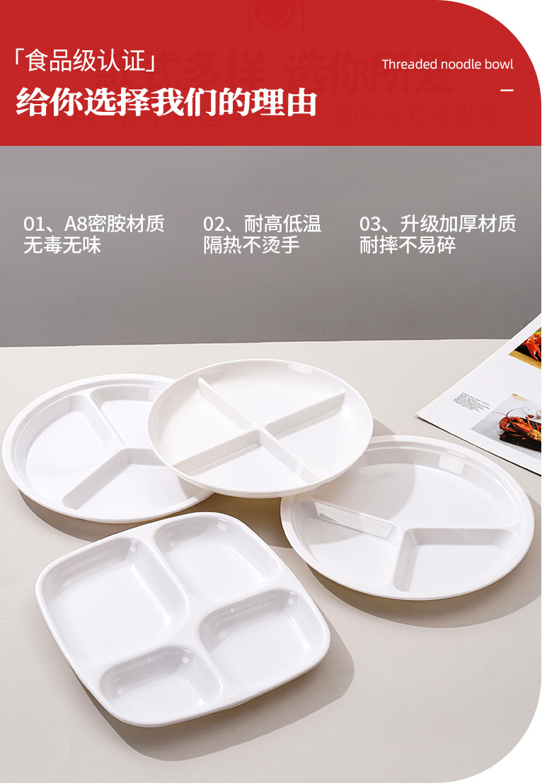 密胺白色多格分格快餐盘仿瓷塑料盘子学校食堂餐厅菜盘六格盘批发