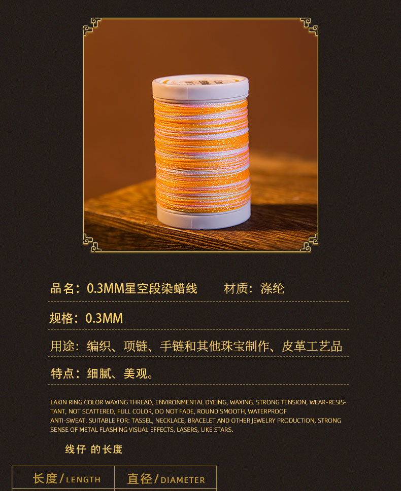 JR厂家直销高端0.3mm星空段染蜡线 DIY手绳 戒指 钥匙扣 包石