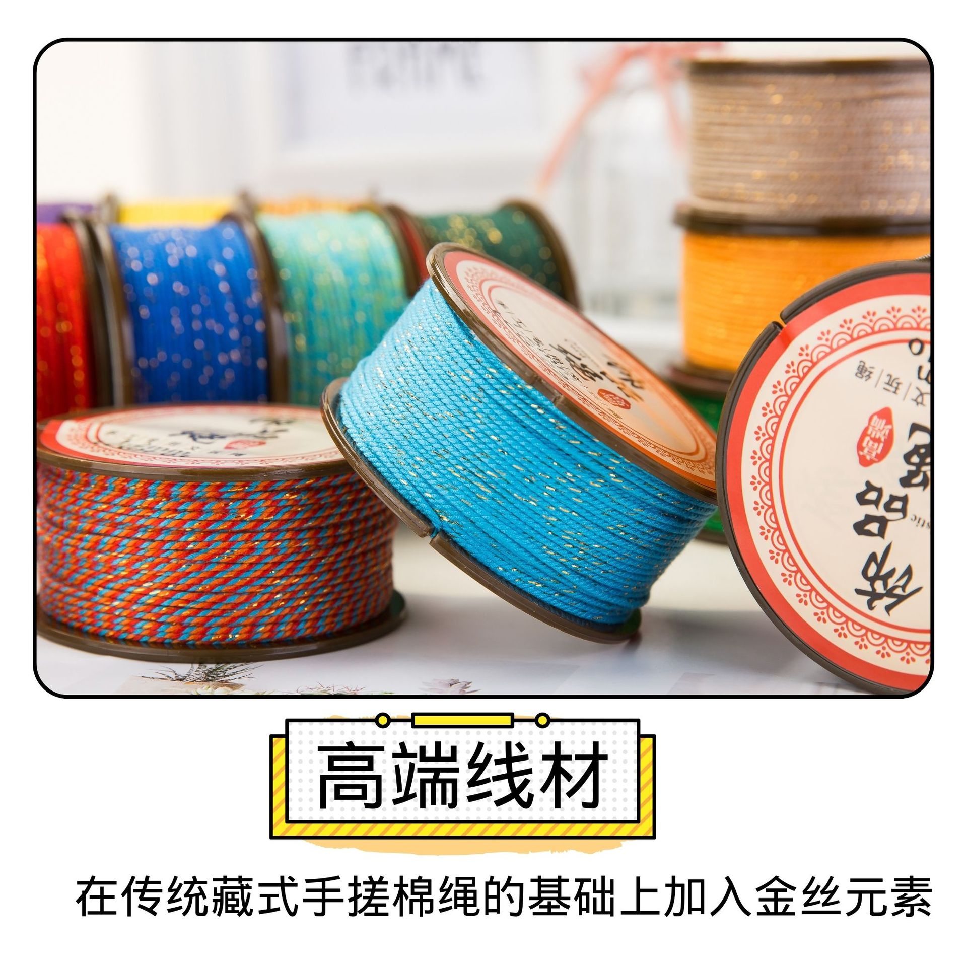 JR晶日厂家直销加膜白金藏式棉绳 菩提文玩手串流苏穿珠手