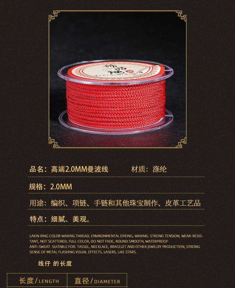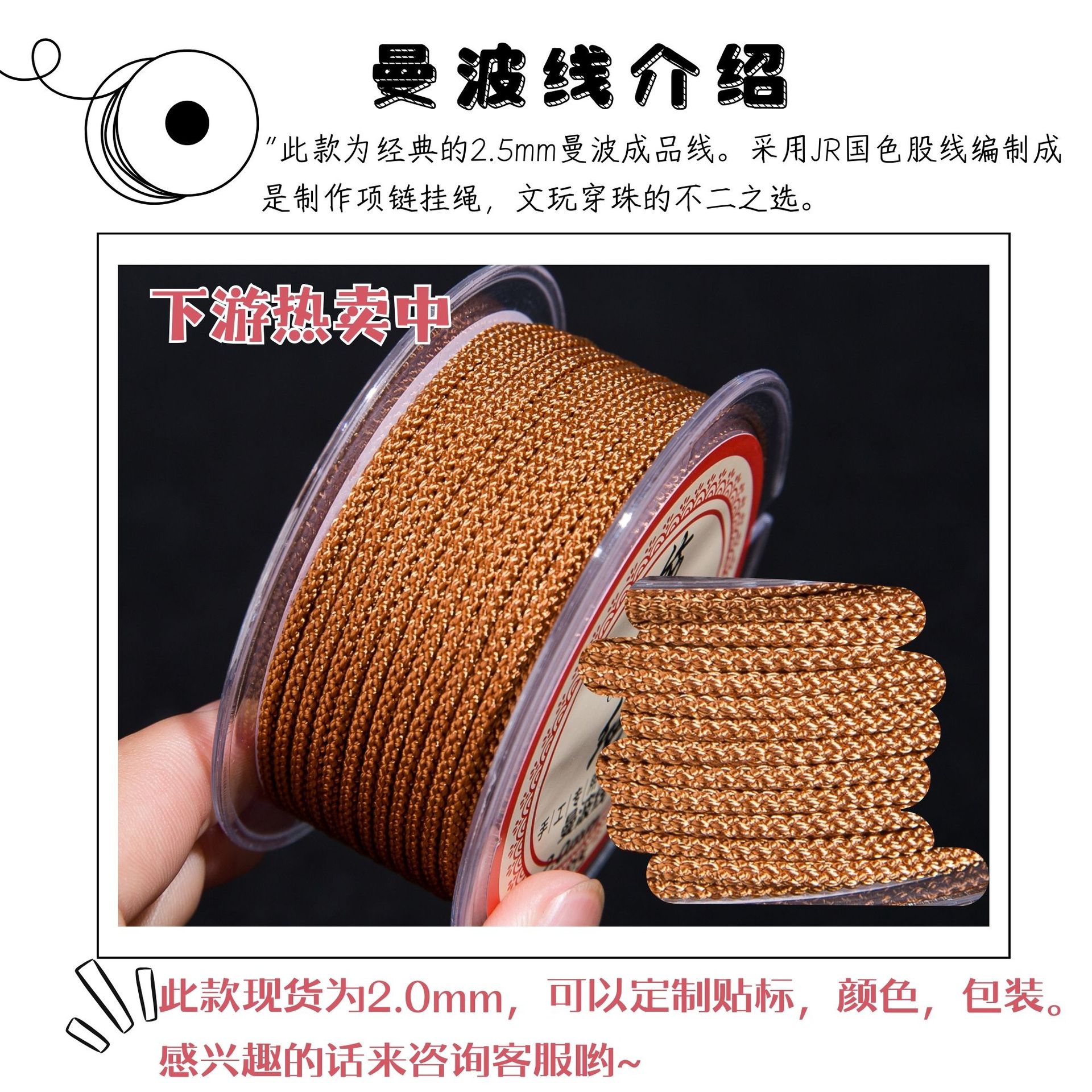 JR厂家直销高端2.0mm曼波线 手工DIY项链挂绳 文玩绳 文玩穿珠