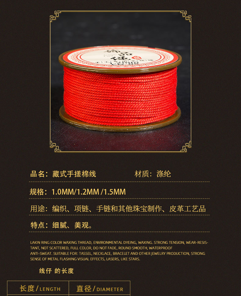 JR晶日厂家直销藏式棉线绳 菩提文玩手串穿珠手工编织