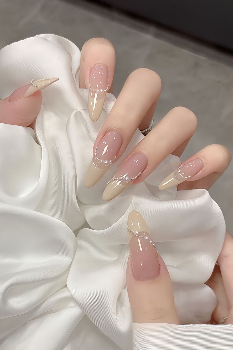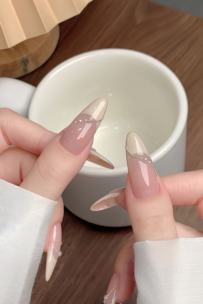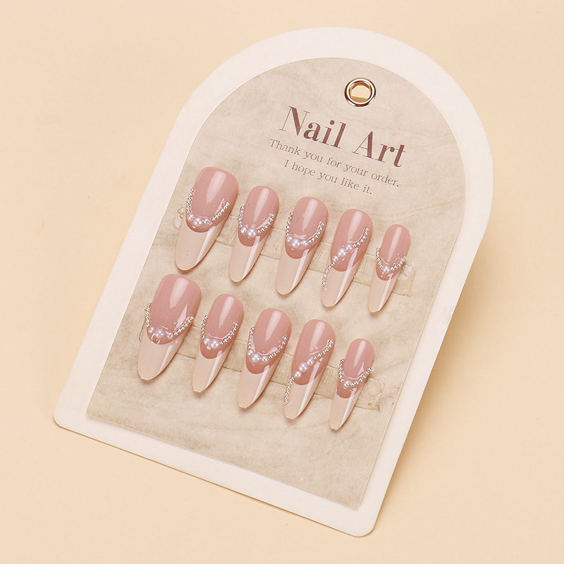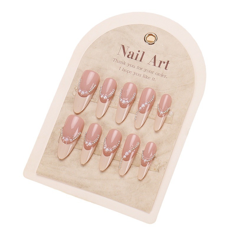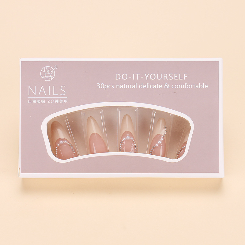 穿戴甲片手工纯夏季纯欲风法式美甲贴片可拆卸圆珠链假指甲片30片