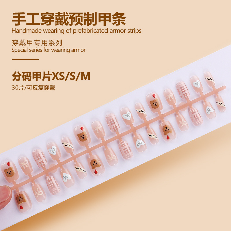 甜酷风穿戴甲批发卡通爱心蝴蝶结美甲片假指甲贴片可拆卸定制加工