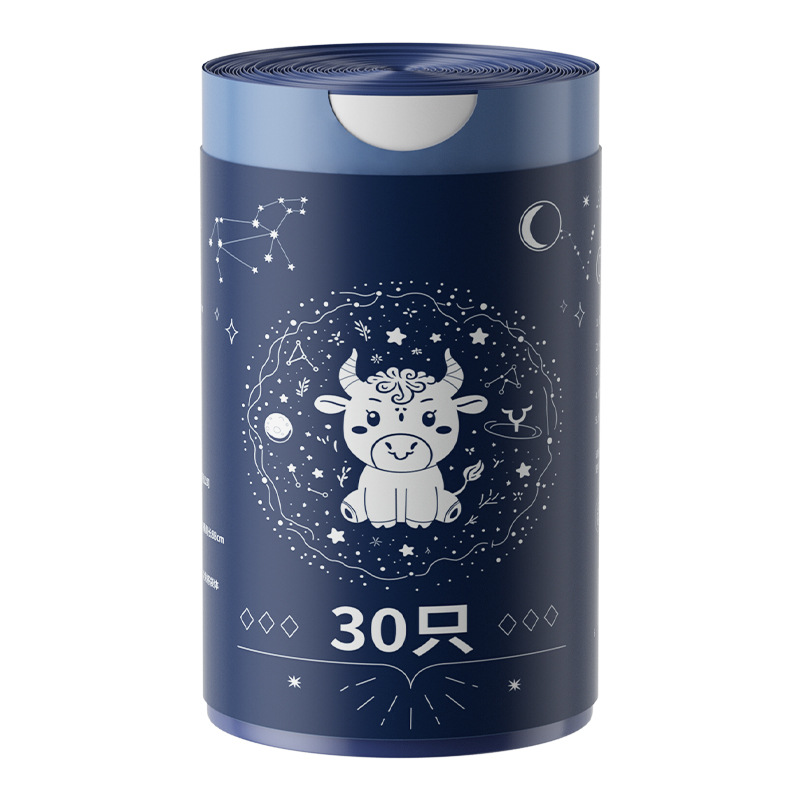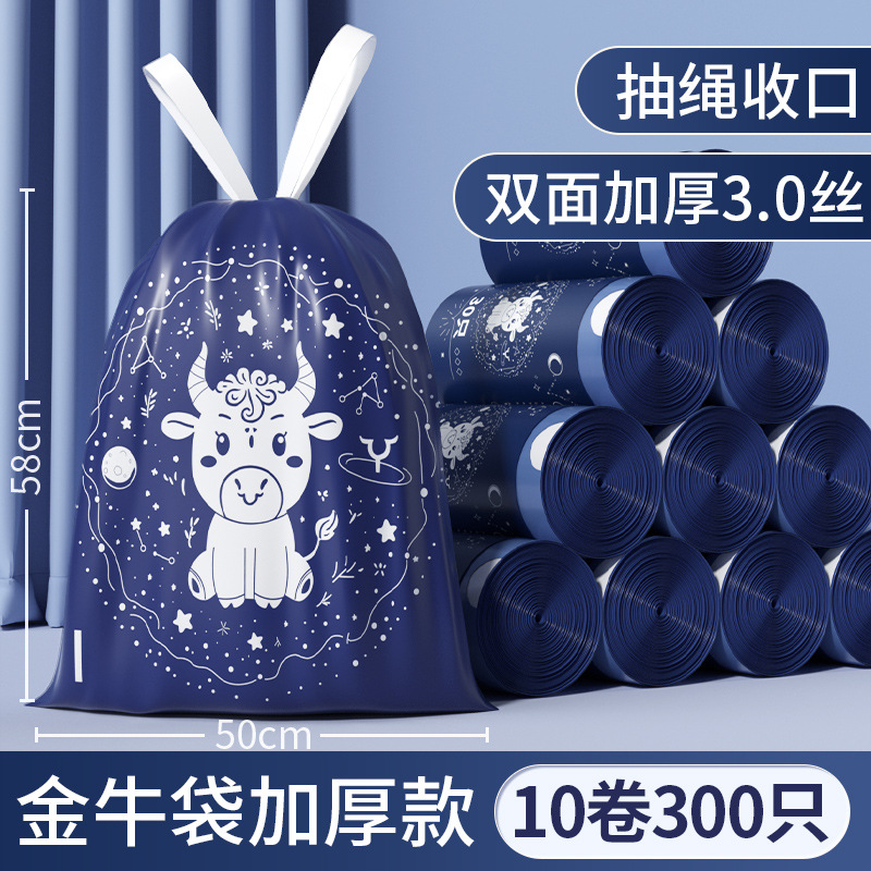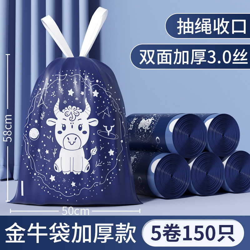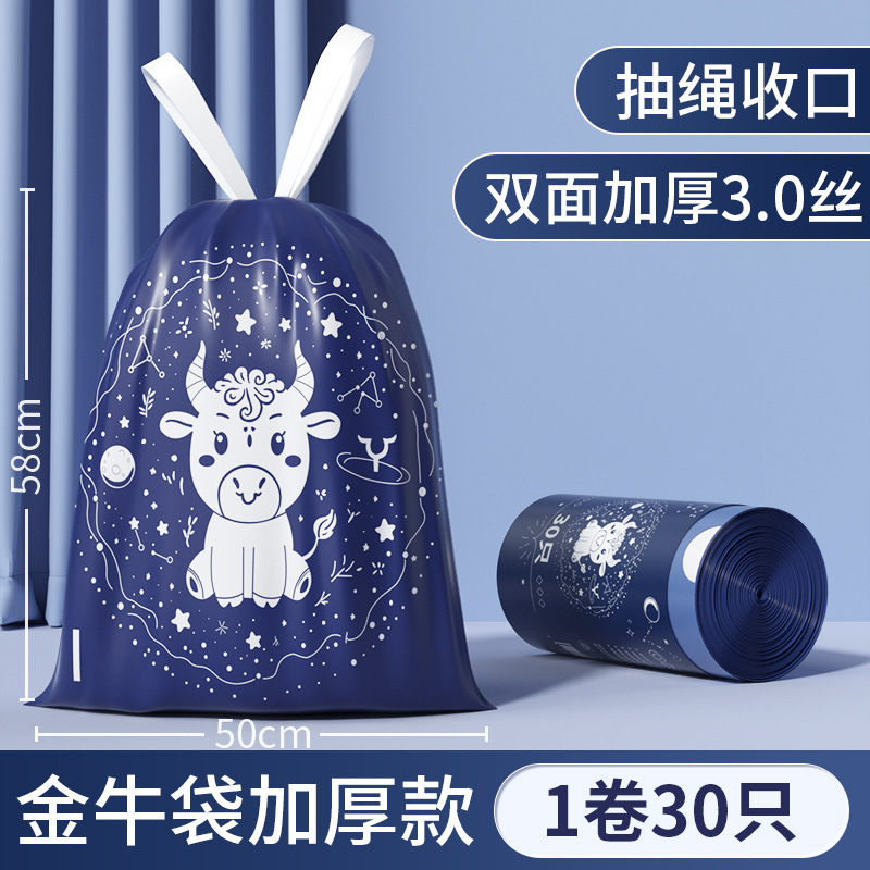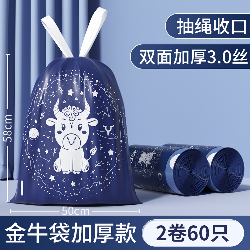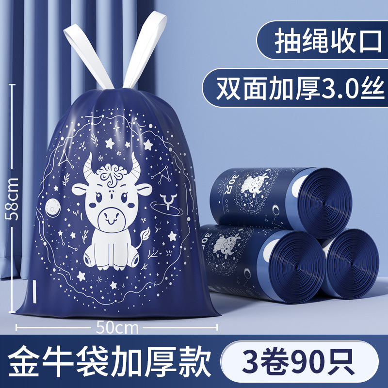 批发 高档印花金牛座居家垃圾袋免撕抽绳双面加厚3.0丝手提式收缩