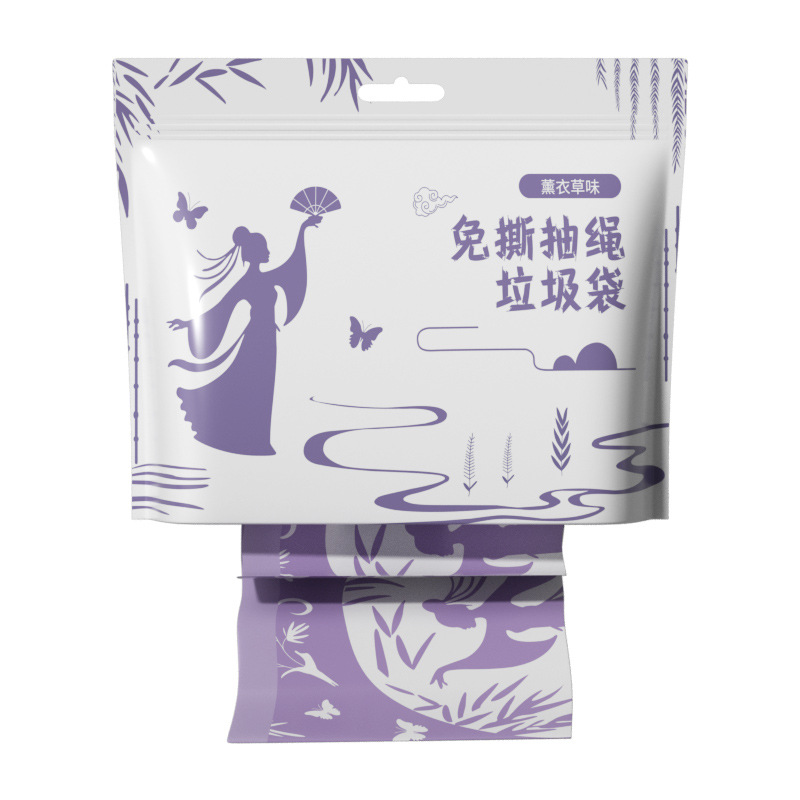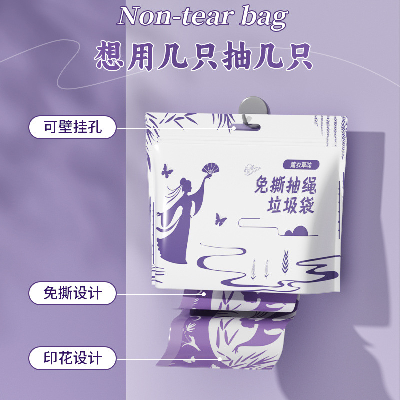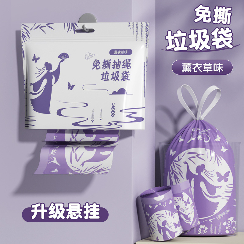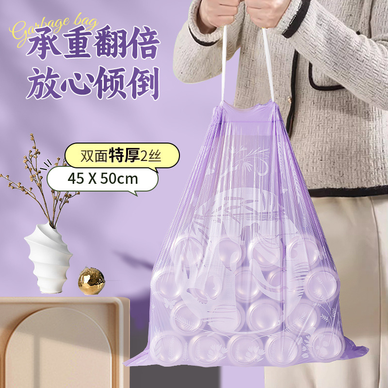 垃圾袋家用加大加厚印花薰衣草抽绳式垃圾袋一次性塑料袋大量批发