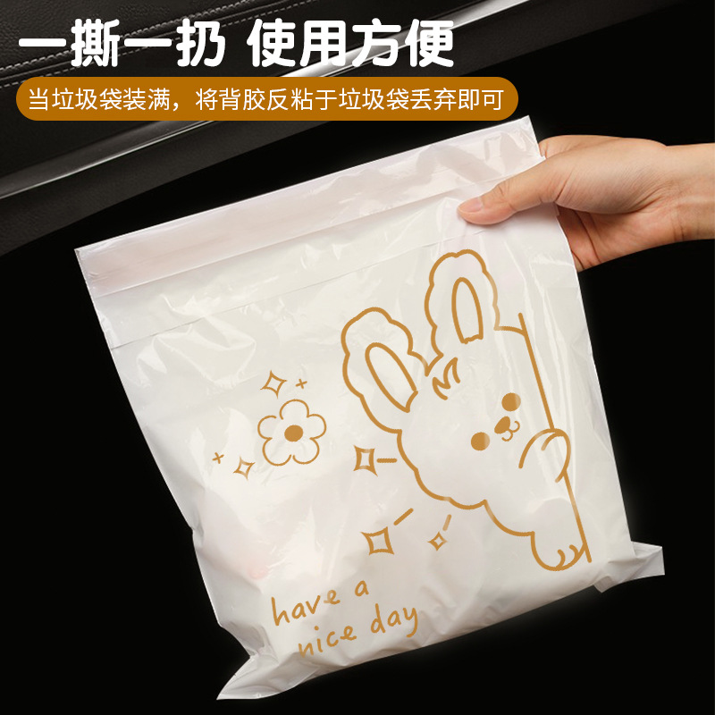 欧凯斯批发车载垃圾袋粘贴汽车椅背桌面清洁 一次性收纳袋萌萌兔