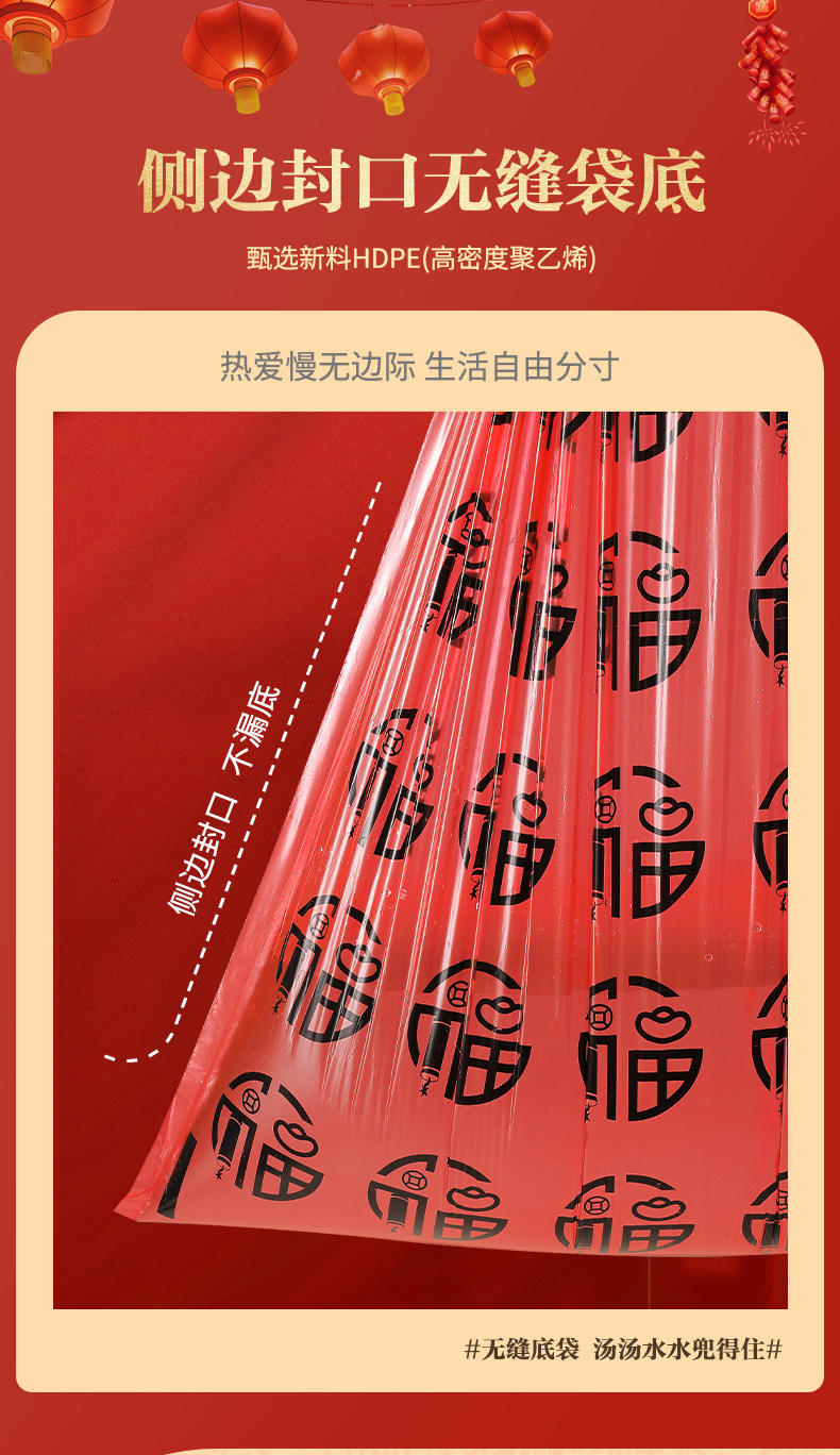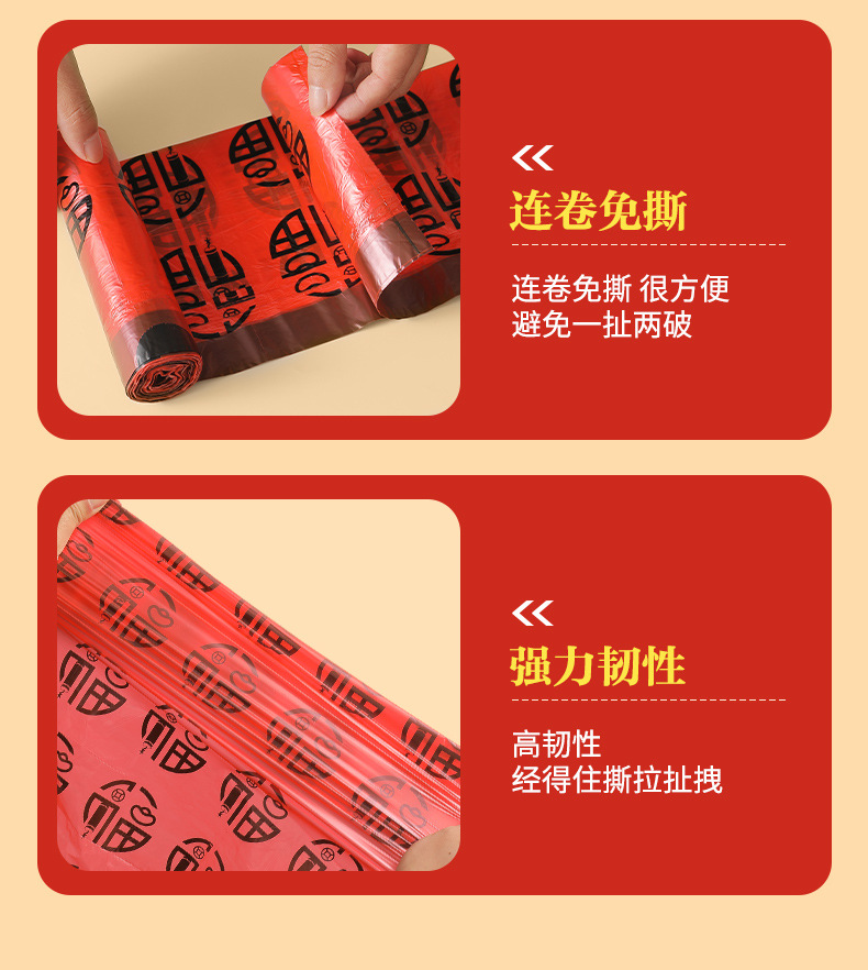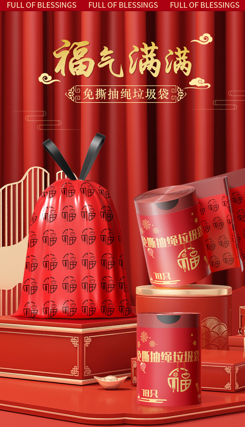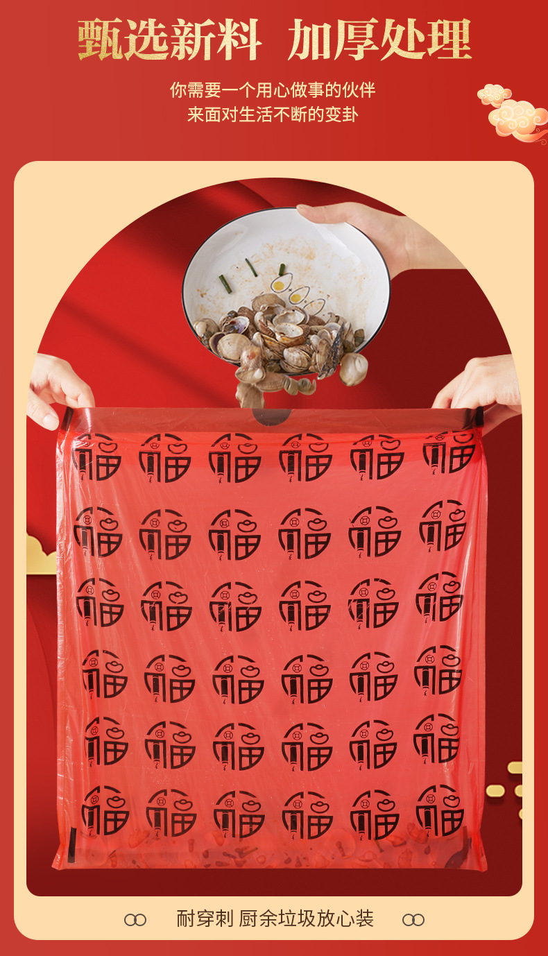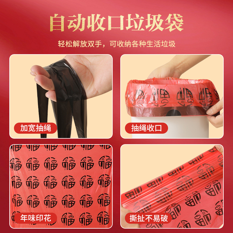 欧凯斯卡通印花抽绳垃圾袋彩色新年福气垃圾袋厨房加厚一件代发