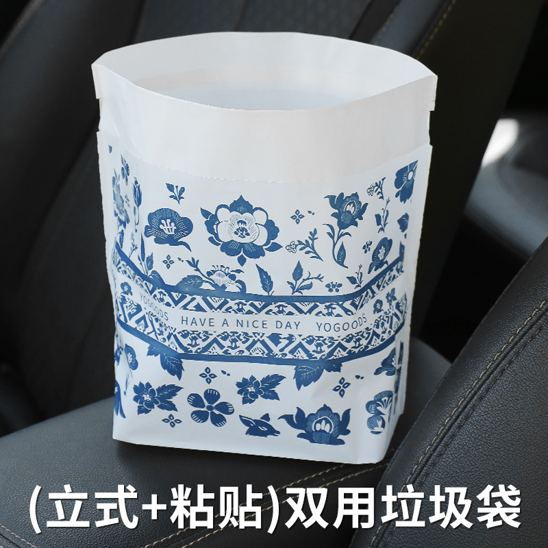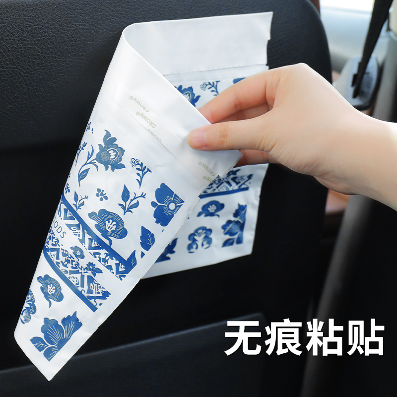 车载垃圾袋 自立式粘贴桌面垃圾袋外出居家青花瓷迷你便携清洁袋