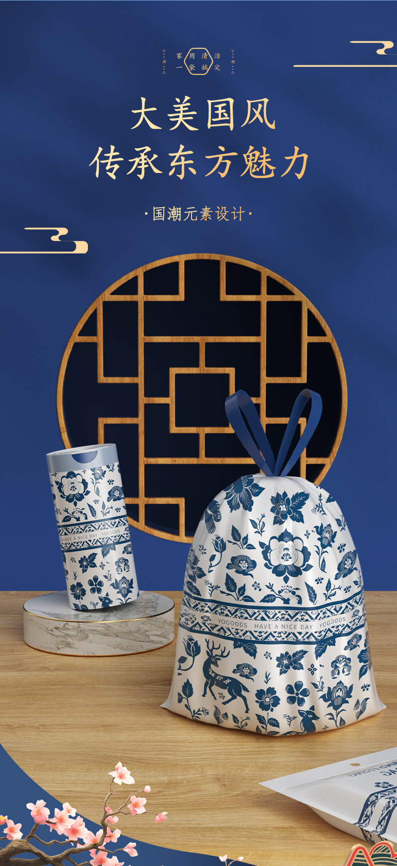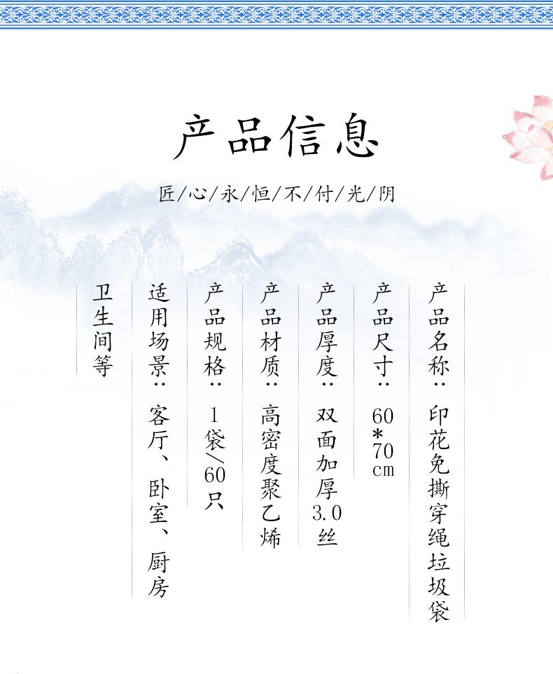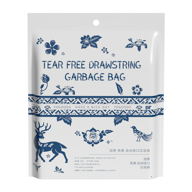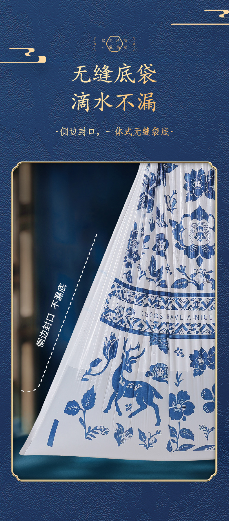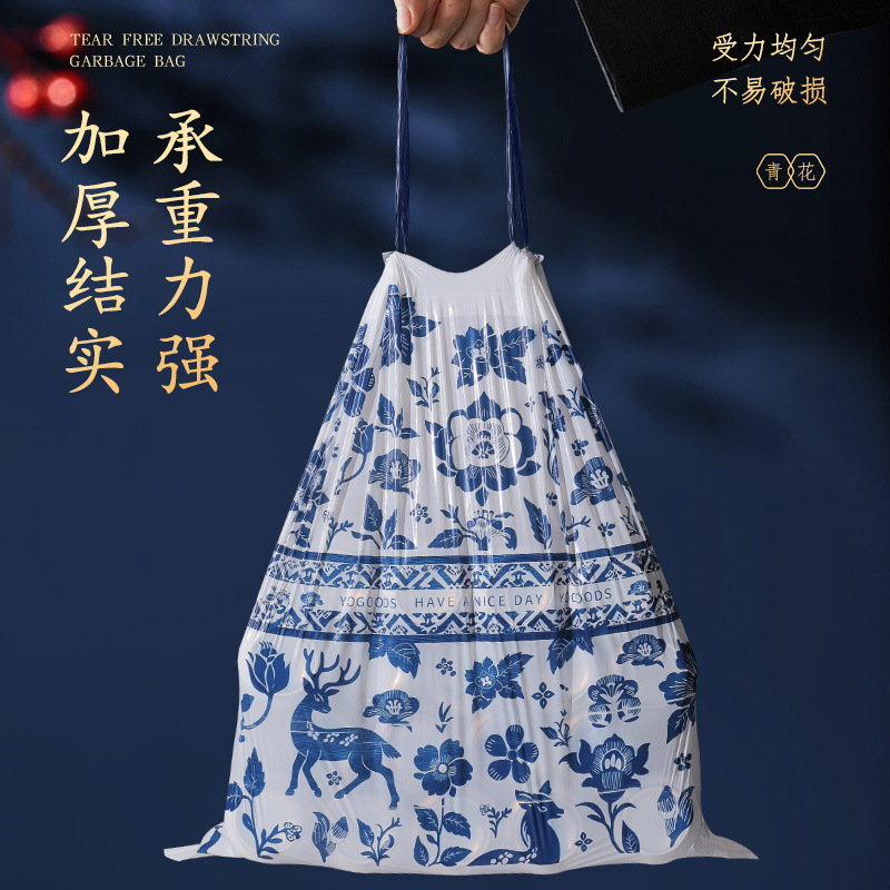 国风垃圾袋 欧凯斯青花瓷免撕抽取加厚厨房垃圾袋自动收口塑料袋