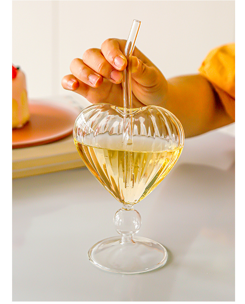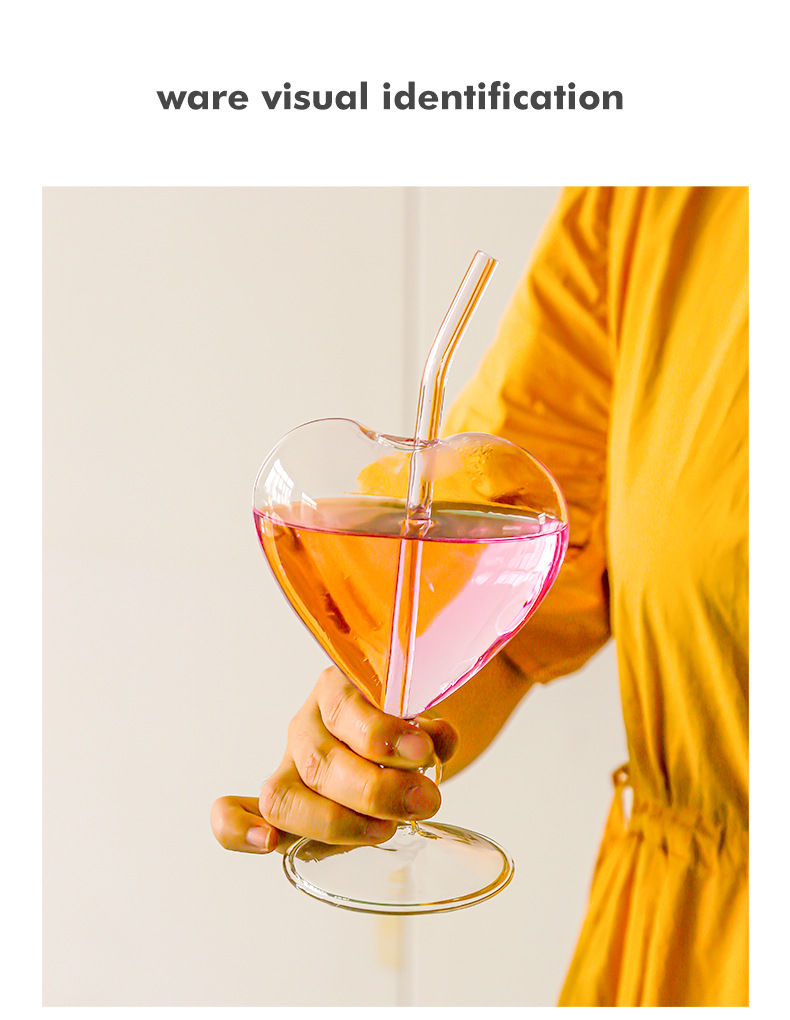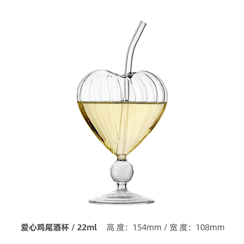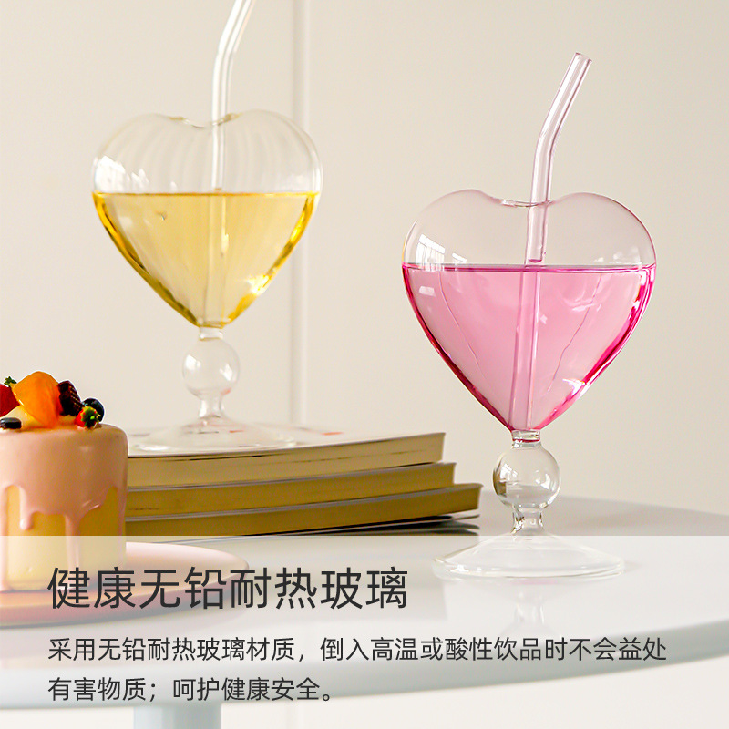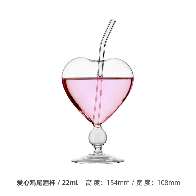 网红ins风创意爱心形酒吧调酒杯果汁软饮料玻璃吸管杯 鸡尾酒杯子